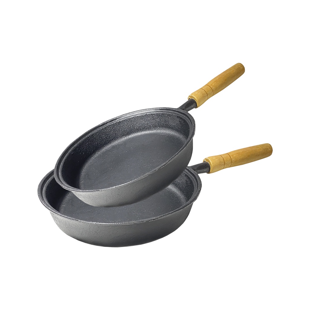 Frigideira de Ferro Fundido Grill Com Cabo Em Madeira 18cm