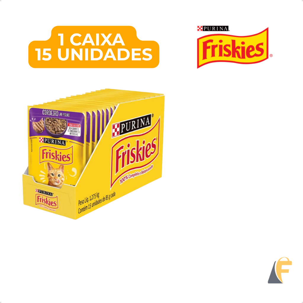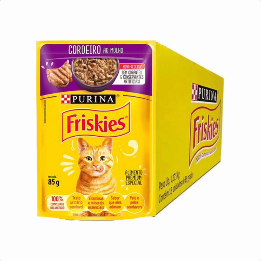 Friskies Gatos Sachê Ração Úmida Cordeiro | Caixa Fechada 15 Unidades 85g Purina