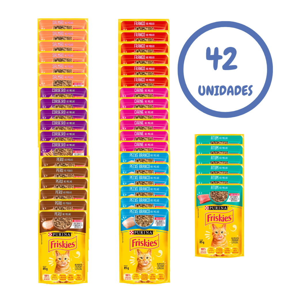 Friskies Ração Úmida Sachê 85g Sabores Sortidos Gatos Kit 42 Sachês