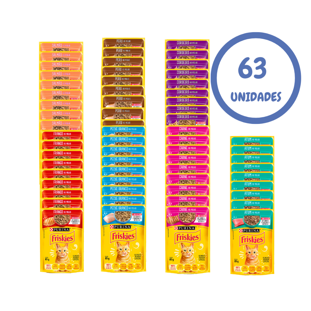 Friskies Ração Úmida Sachê 85g Sabores Sortidos Gatos Kit 63 Sachês