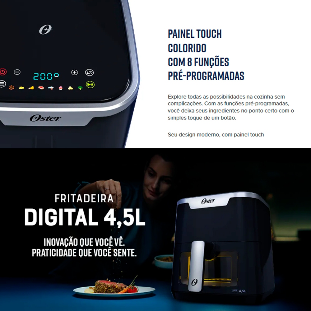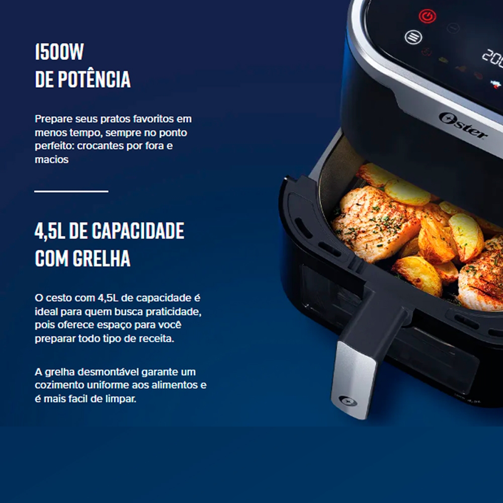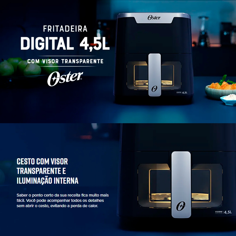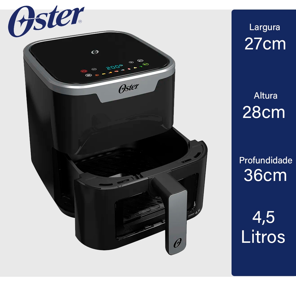 Fritadeira Air Fryer Oster 4,5Lts OFRT920 Panel Touch e Visor Transparente e Preta - 127V