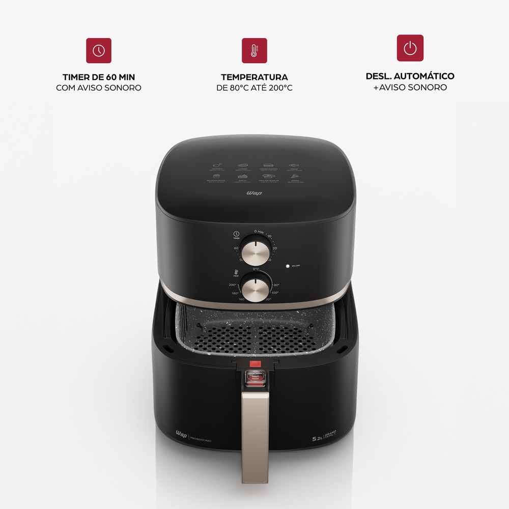 Fritadeira Elétrica 2 EM 1 Airfry Air Fryer Sem Óleo 5,2L Antiaderente Grand Prosdócimo 1500W Wap