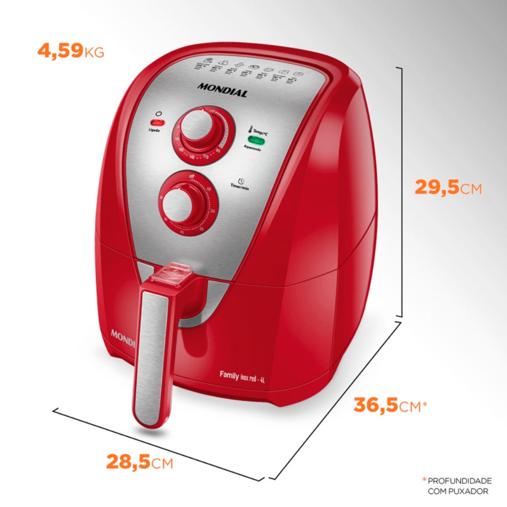 Fritadeira Elétrica Air Fryer Mondial 4L AFN-40 Vermelho/Inox
