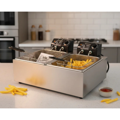 Fritadeira Elétrica Industrial em Inox Dupla 14 Litros com 6.000 Watts -Eficiência e Qualidade para sua cozinha.
