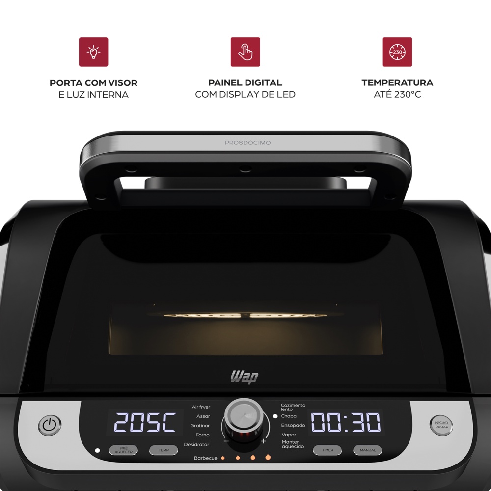 Fritadeira Elétrica Sem Óleo Churrasqueira Air Fryer 10l 1700w Wap Airfry Barbecue Digital 12 Em 1