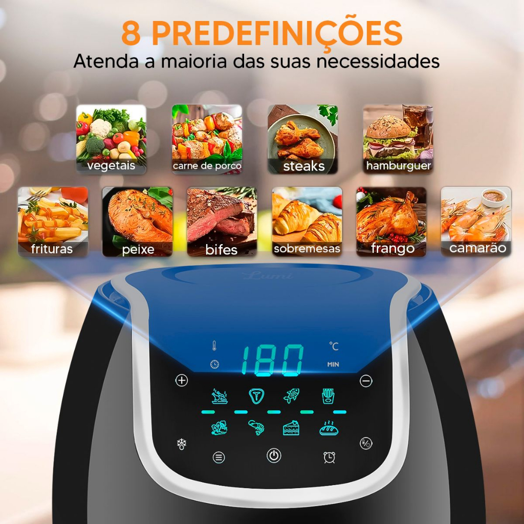 Fritadeira Elétrica sem Óleo 6,5L Air Fryer Digital Touch 110V -1700Watts-LUMI