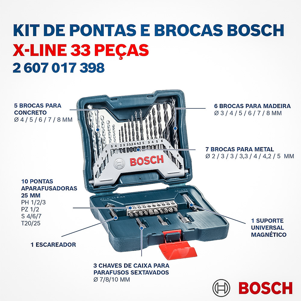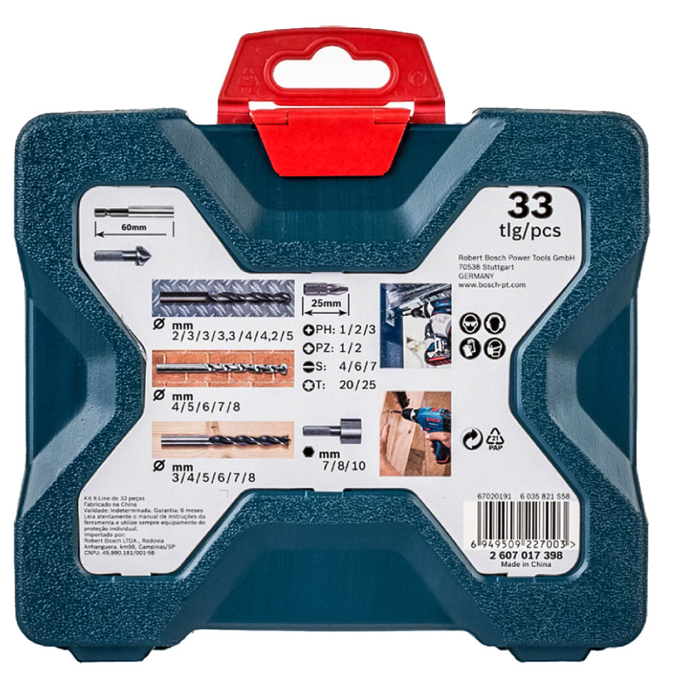 Furadeira Bosch GSB 183-LI 18V com Bateria + Kit Brocas e Pontas X-Line 33 Peças
