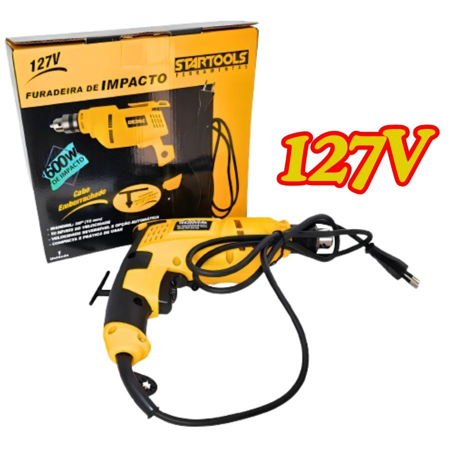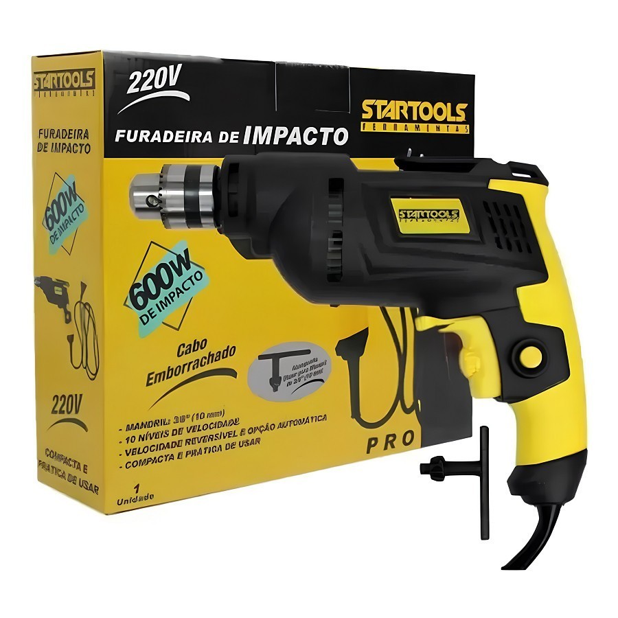 Furadeira De 600W Impacto Startools 10mm 220v Ou 127v Com Cabo Emborrachado Com Chave De Mandril