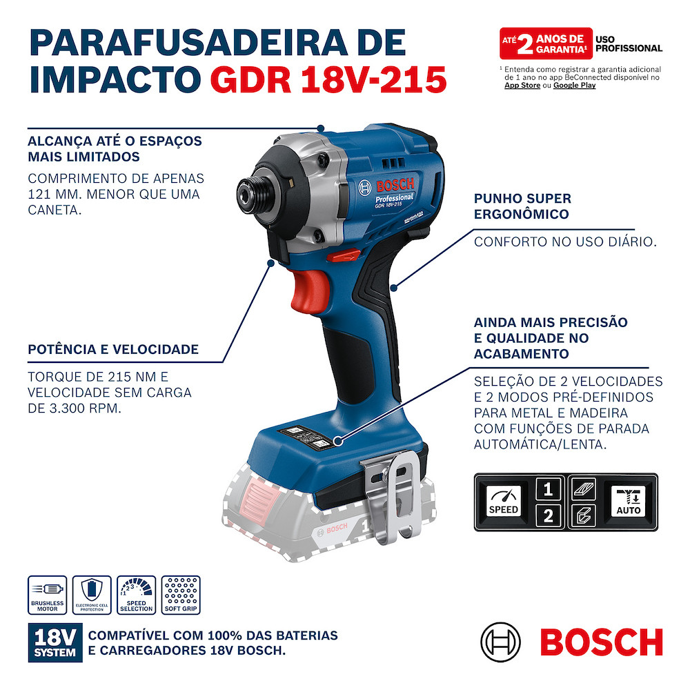 Furadeira Gsb185-li + Chave Impacto Gdr18v-215 Com 2 Baterias E Maleta Bosch Combo