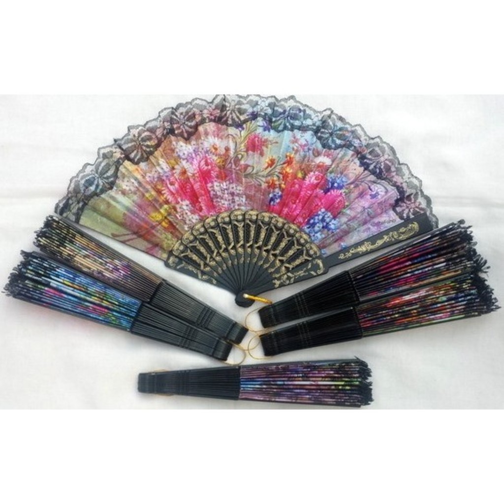 GUI ANA Leque de Tecido Colorido/PRETO Estampado Plastico perfeito para lembrancinha Casamento