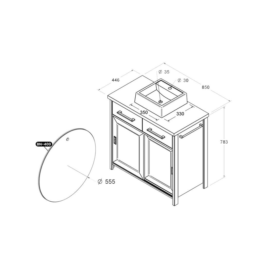 Gabinete Armário Banheiro Ditália com Cuba + Espelho / BN-03 cor:cinza