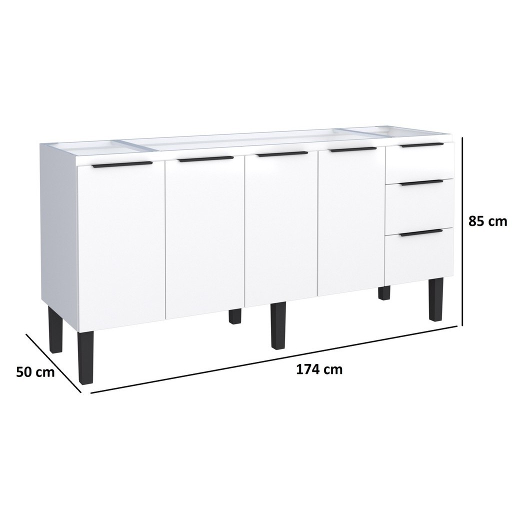 Gabinete Armário Cozinha Jupter Cozimax 1.80 Mt 100% Aço P/ Pia -Balção 180 cm -4 Portas- 3 Gavetas -Branco
