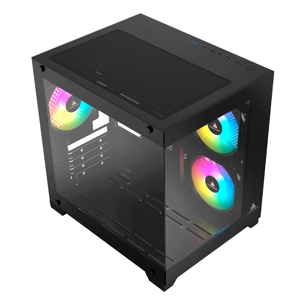Gabinete Gamer Acegeek Gimli, Rainbow, Mid-Tower, Lateral de Vidro, Com 3 Fans, Preto AG-GIMLI-BK-3F