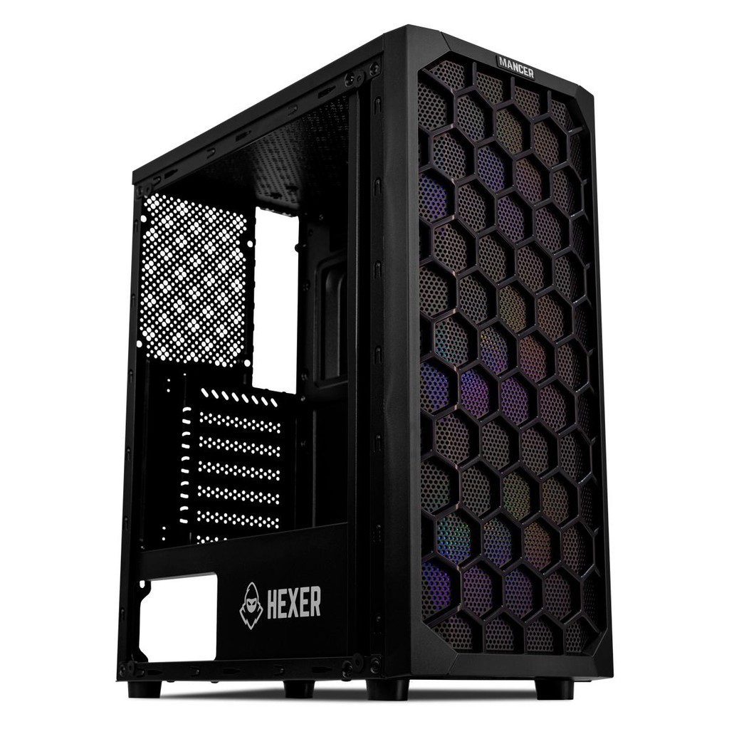 Gabinete Gamer Mancer Hexer, Rainbow, Mid-Tower, Lateral de Vidro, Com 3 Fans, Preto, MCR-HEX-RB01