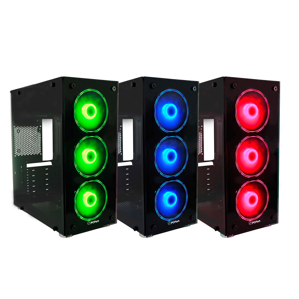 Gabinete Gamer PCFort Endless RGB com 3 fans RGB Preto