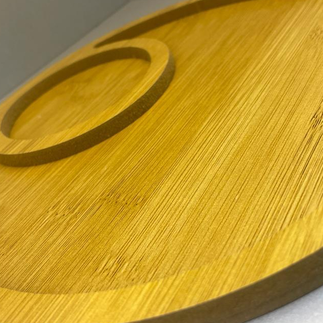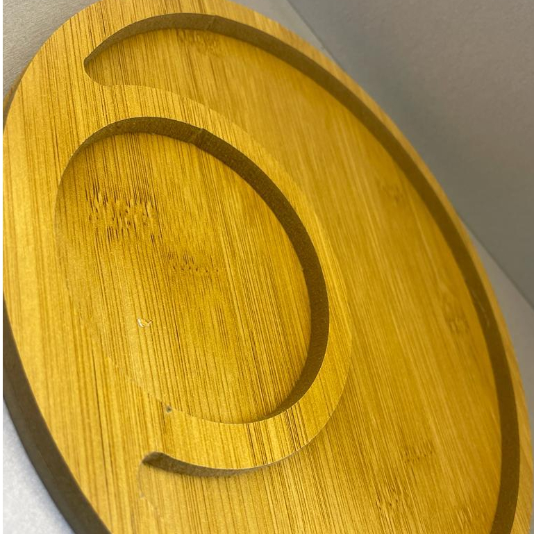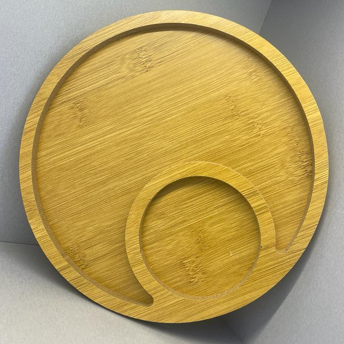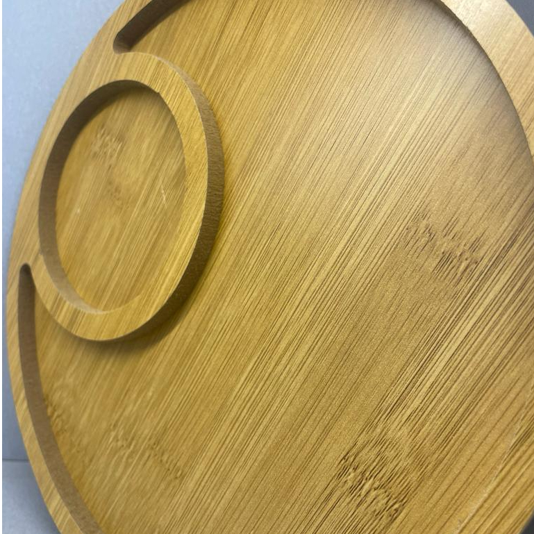 Gamela 2 Divisórias Redonda De MDF 23,5x23,5x1,3Cm Para Aperitivos Churrasco Frios Prático e Fácil De Se Usar Clink