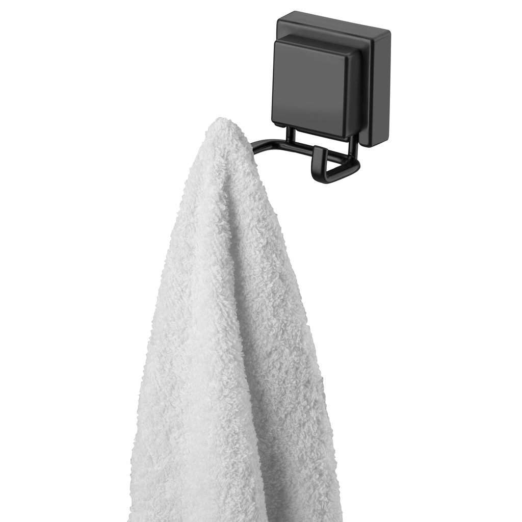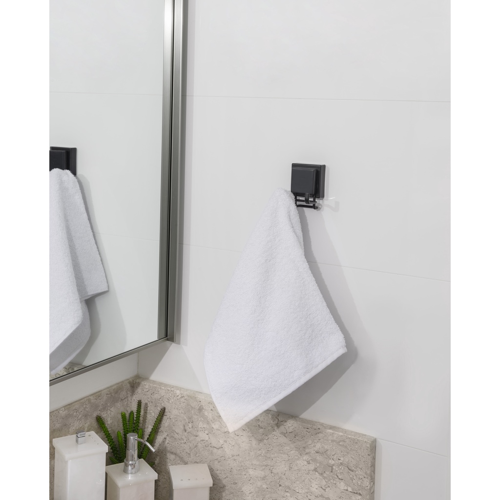 Gancho De Parede Duplo Multiuso Porta Toalha De Banho Rosto Banheiro Preto Fosco Fixação Ventosa Sem Furo