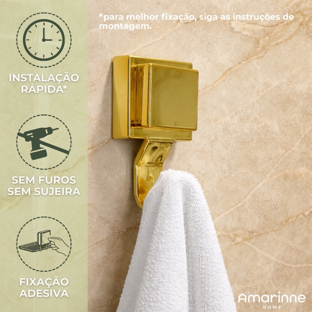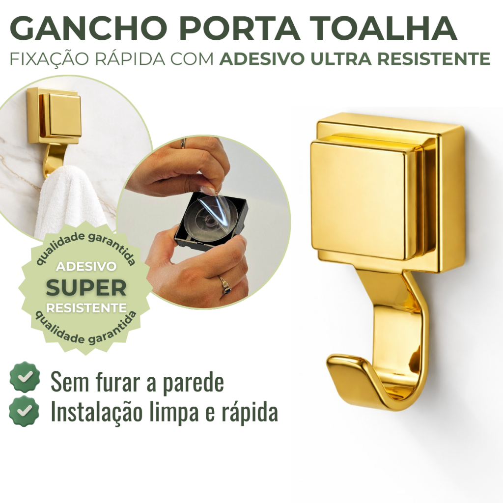Gancho Porta Toalha Dourado Banheiro Adesivo Resistente Cabide Future