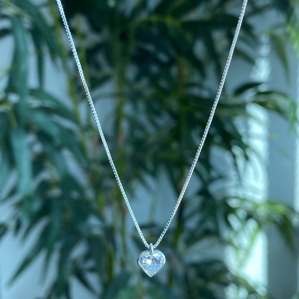 Gargantilha chocker 40cm Prata 925 Ponto de Luz coração 40cm