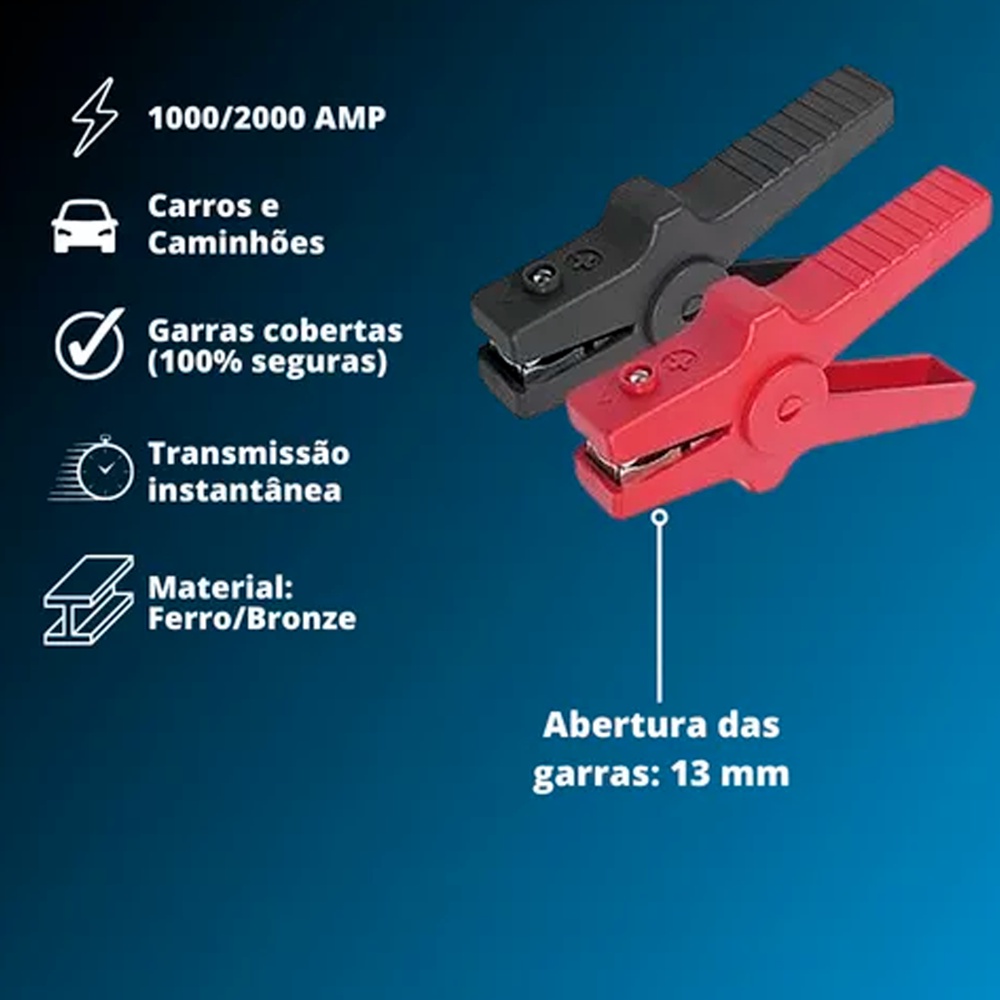 Garra De Jacaré Para Cabo Automotivo Até 2000Amp Chupeta Carregar Bateria Carro Moto Veículo