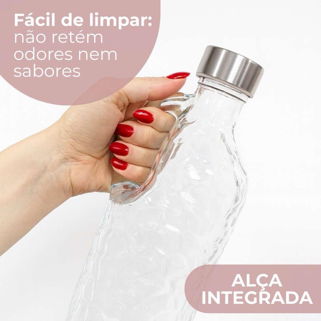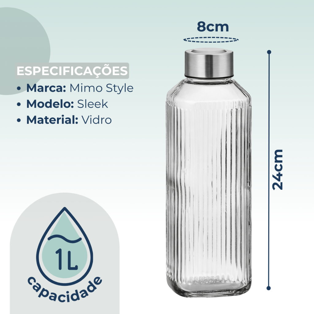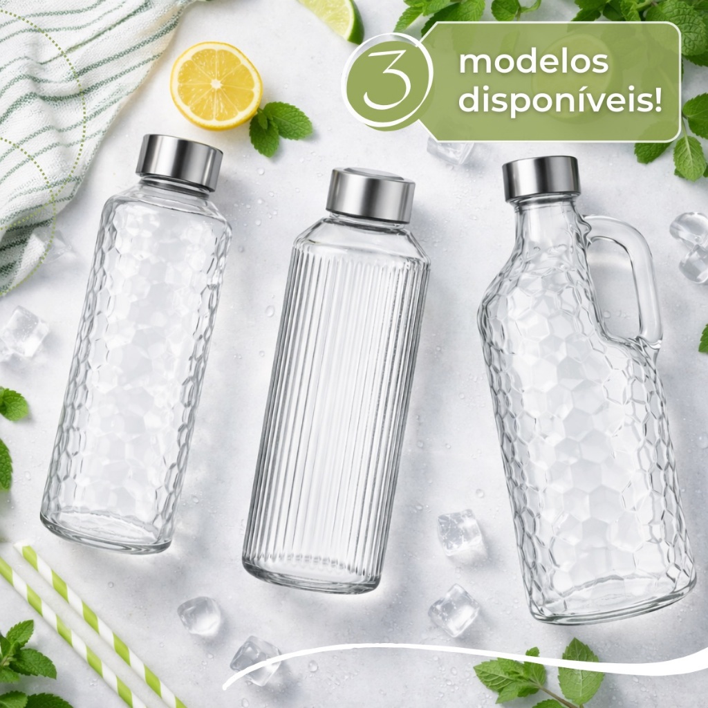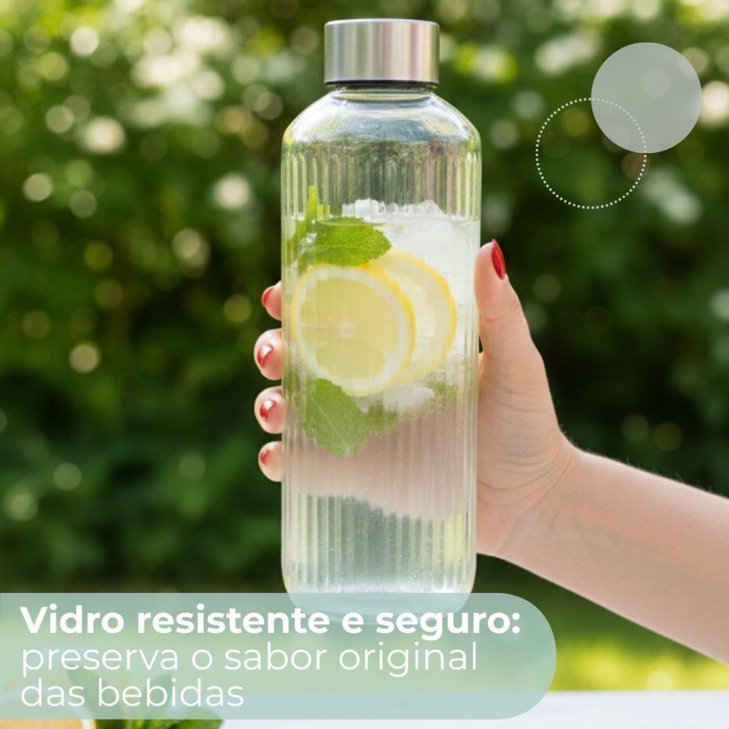 Garrafa de Vidro 1 Litro Tampa Inox Água Suco Geladeira