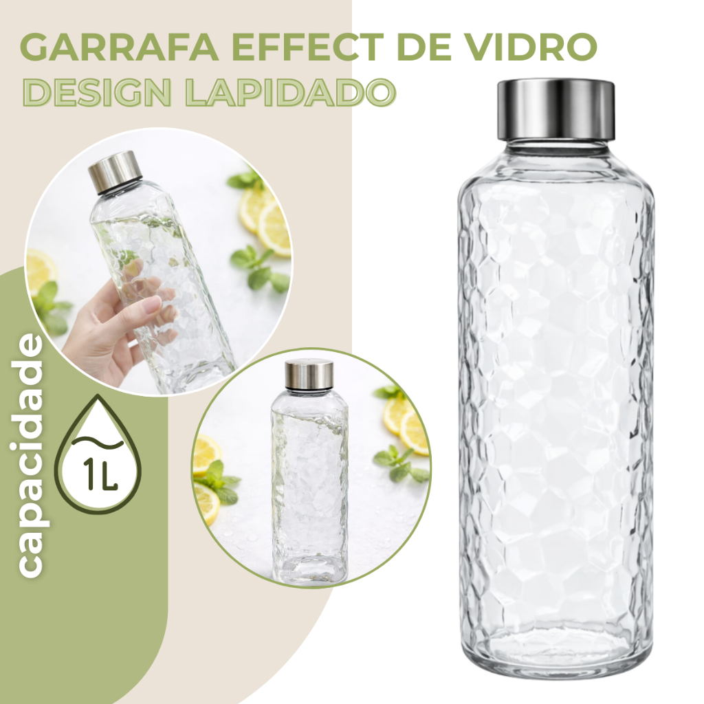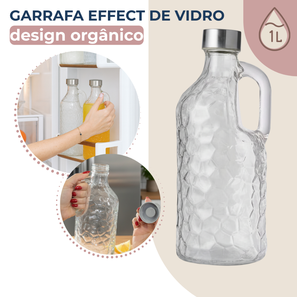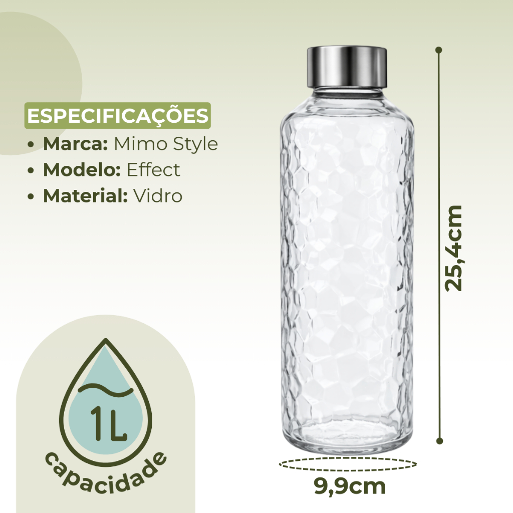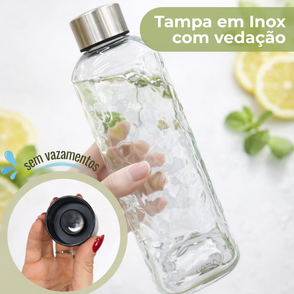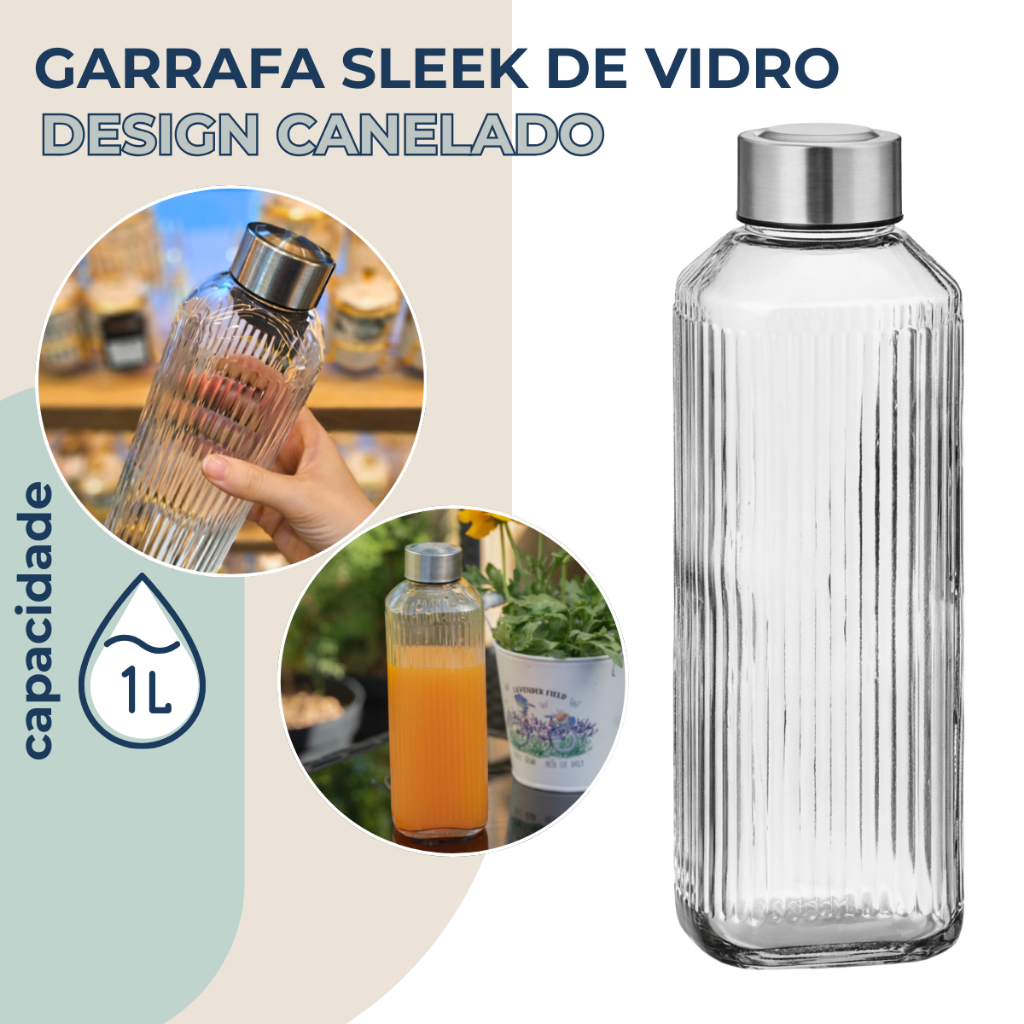 Garrafa de Vidro 1 Litro Tampa Inox Água Suco Geladeira