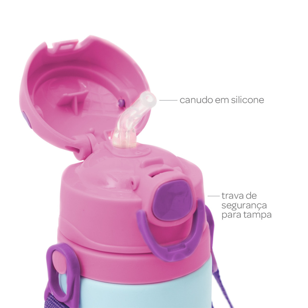 Garrafinha Alumínio Canudo Buba Animal Fun Unicórnio 400ml