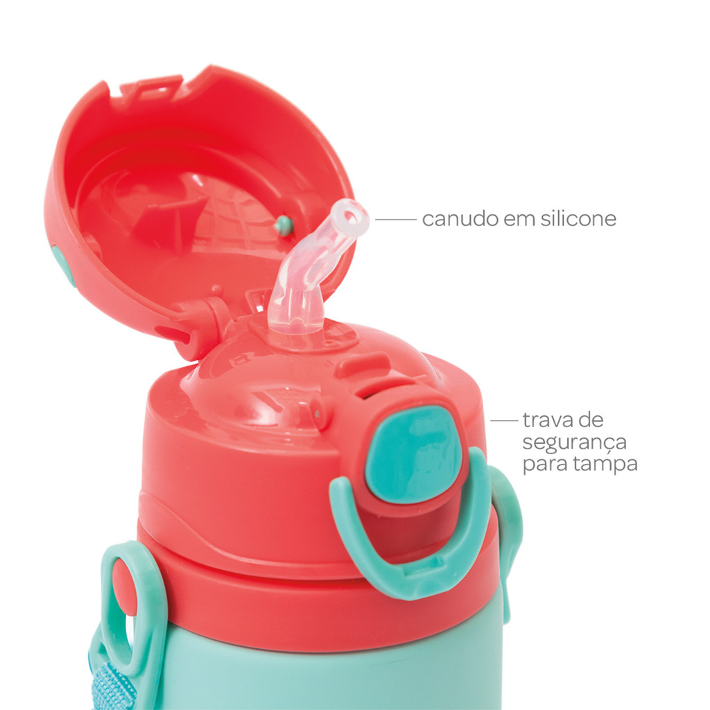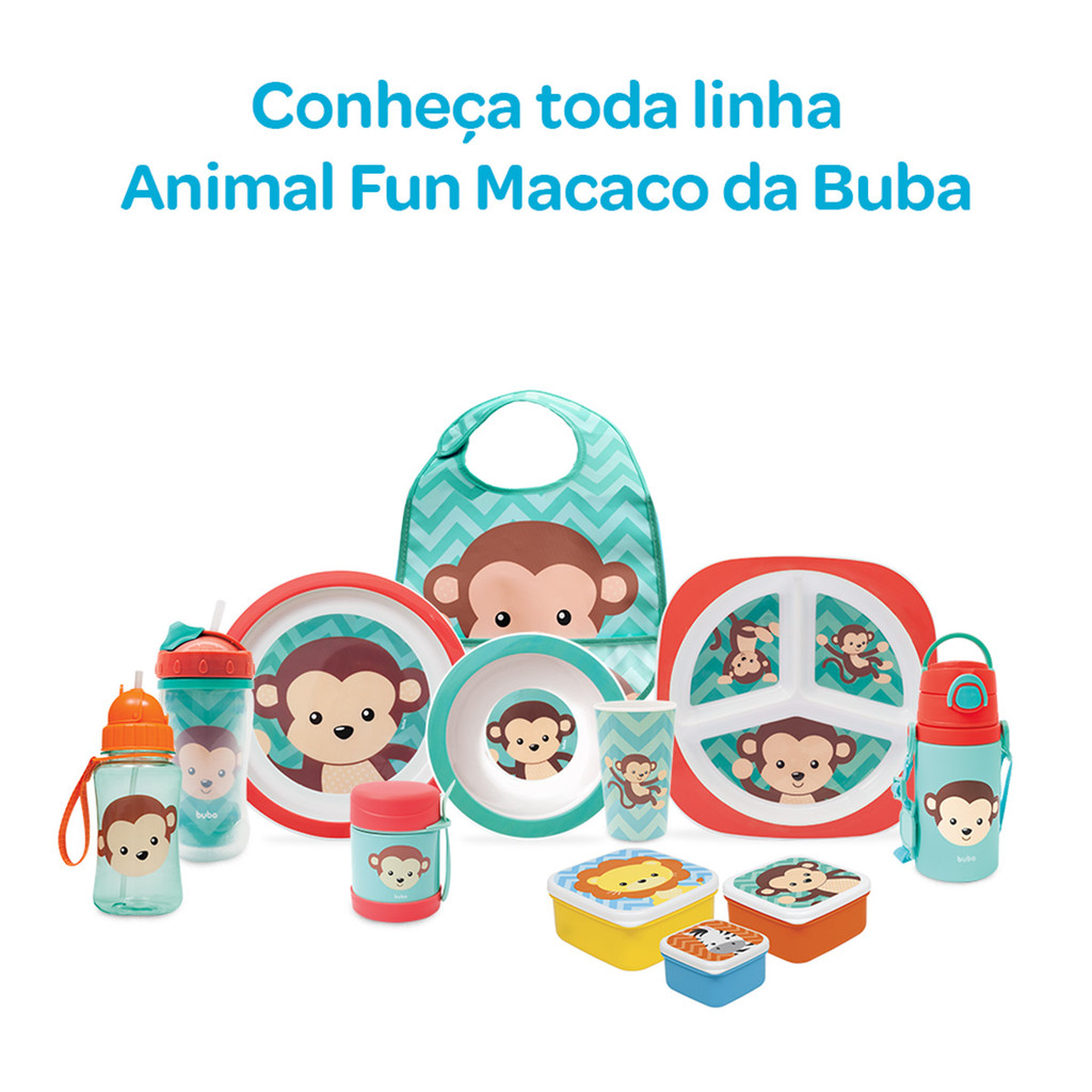 Garrafinha Alumínio Com Canudo Buba Animal Fun Macaco 400ml