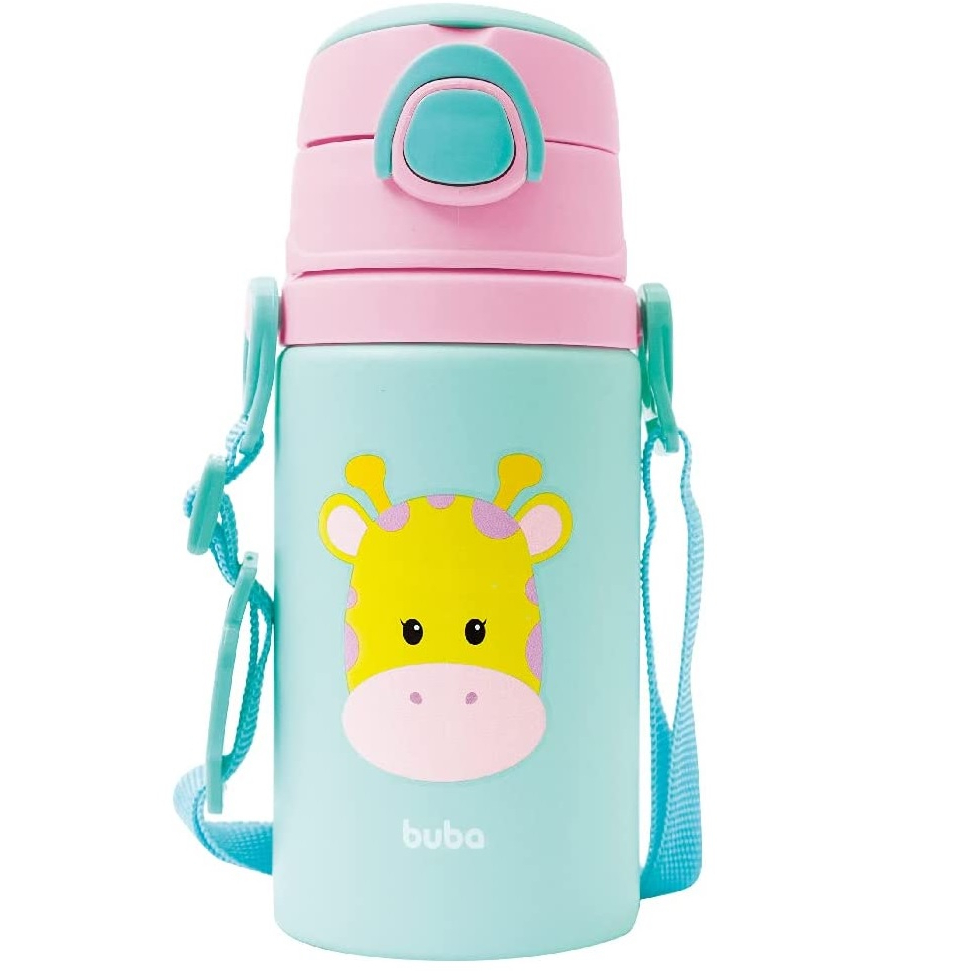 Garrafinha De Alumínio Com Canudo Buba Animal Fun Aventuras Garrafa Girafa Leão Unicórnio Macaco Ino