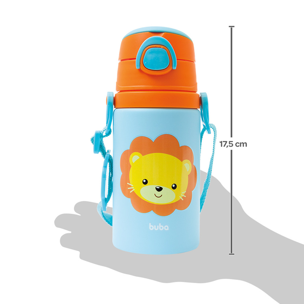 Garrafinha De Alumínio Com Canudo Buba Animal Fun Leão 400ml