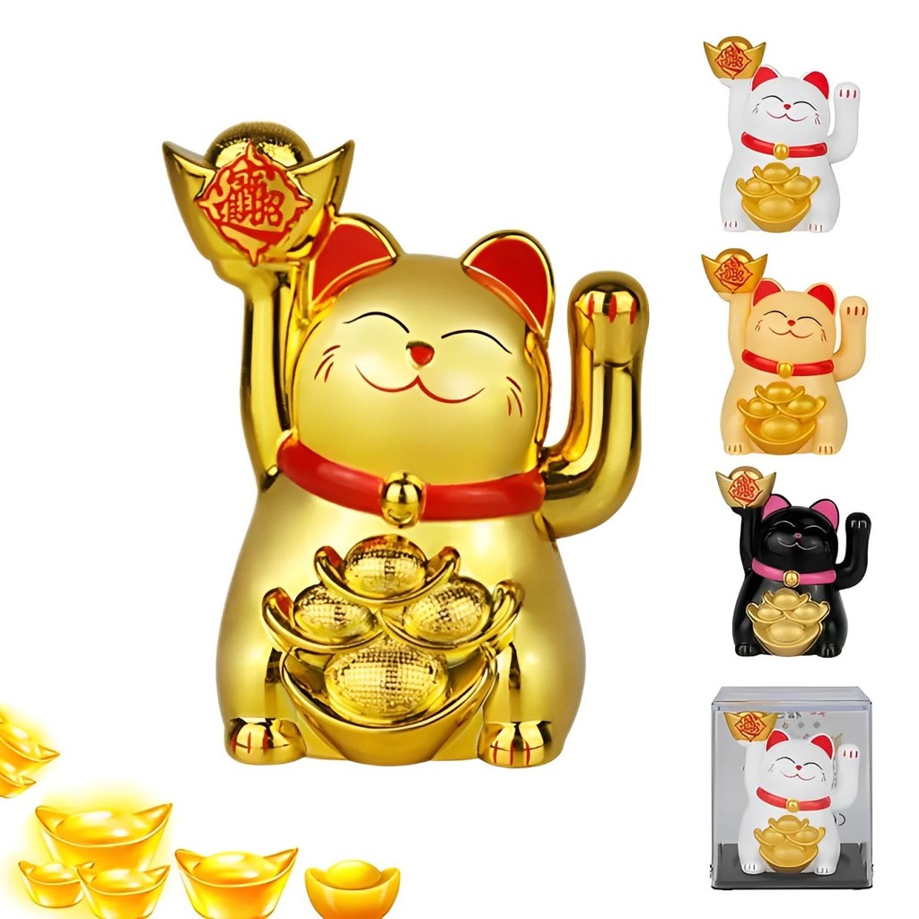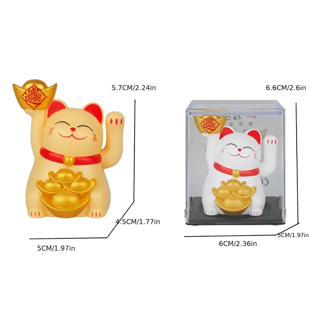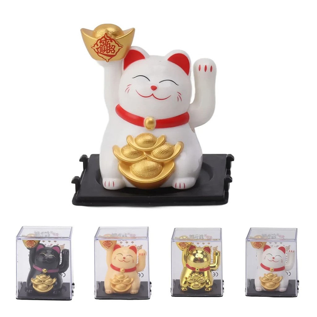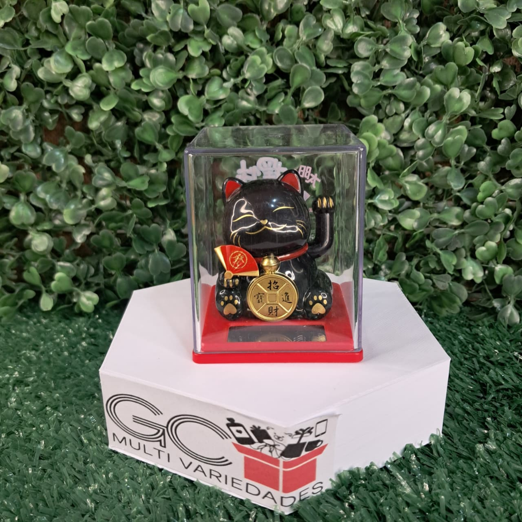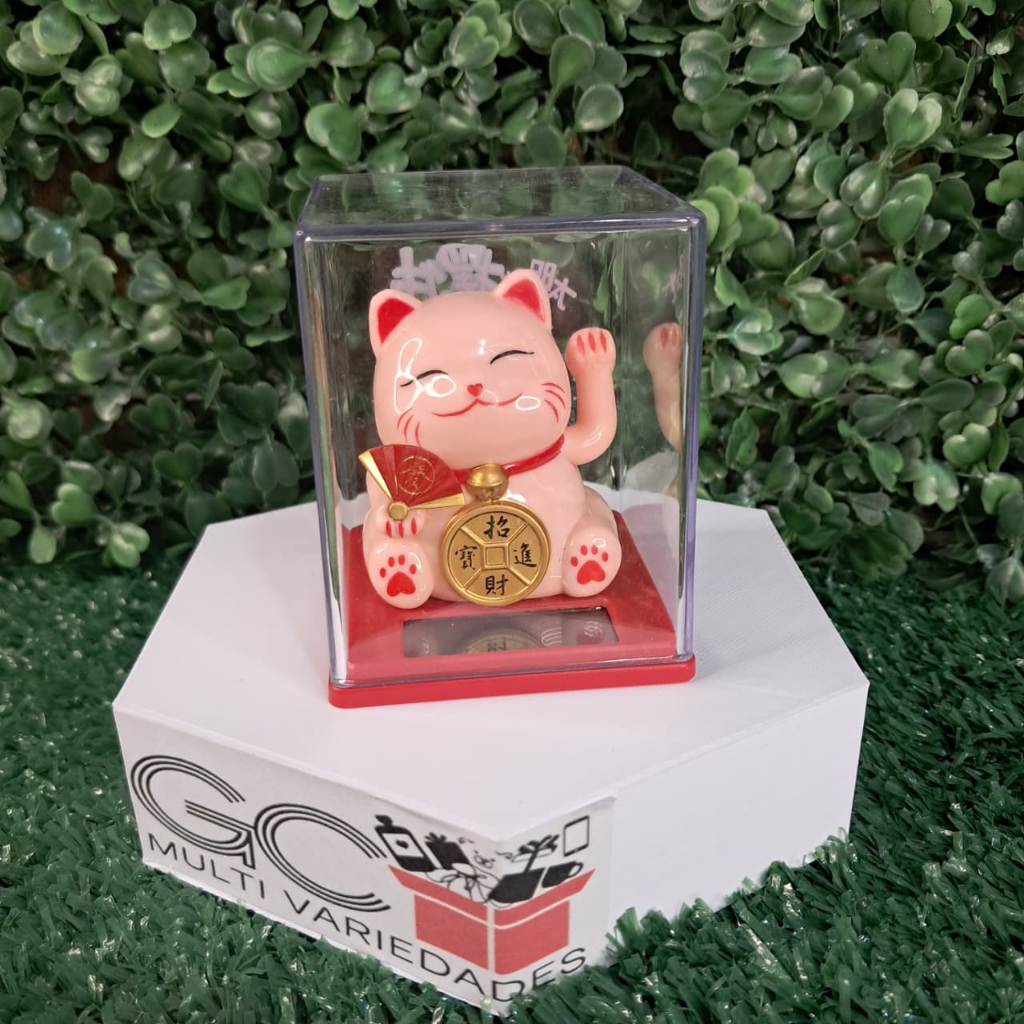 Gato da Sorte ManekiNeko Japonês Acenando Movido a Energia Solar Enfeite Decorativo