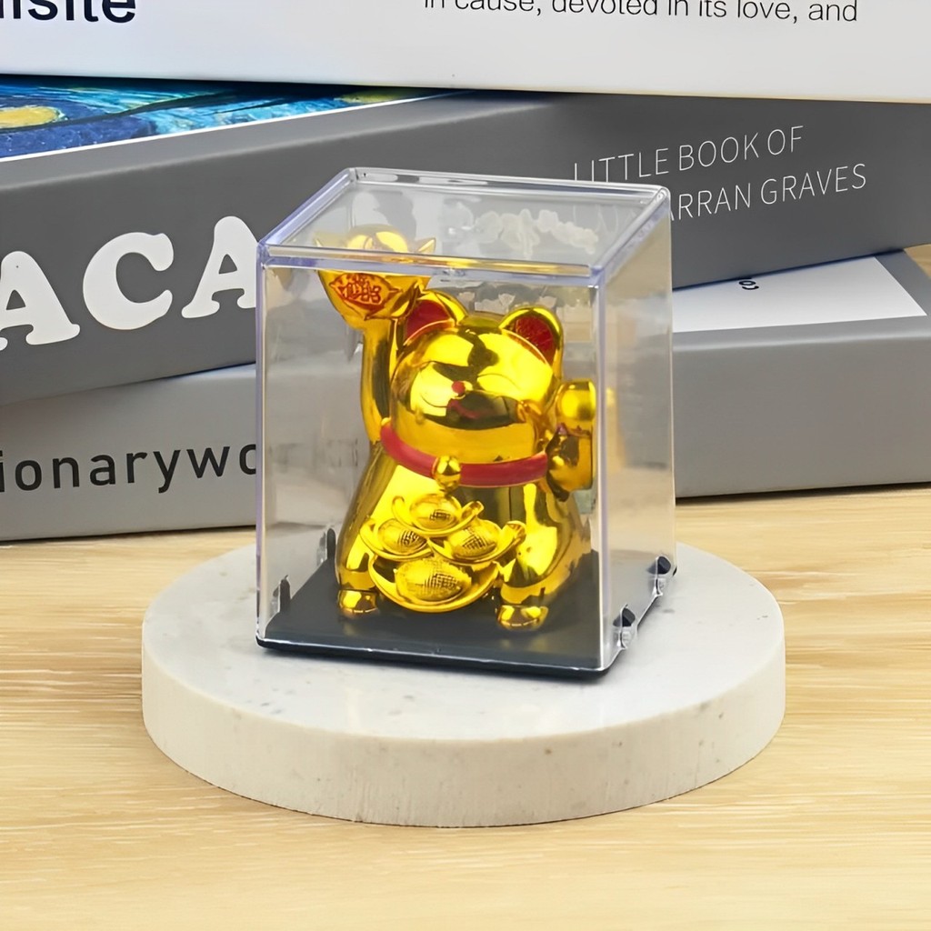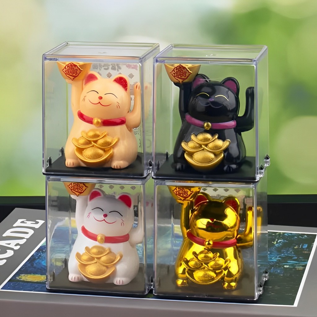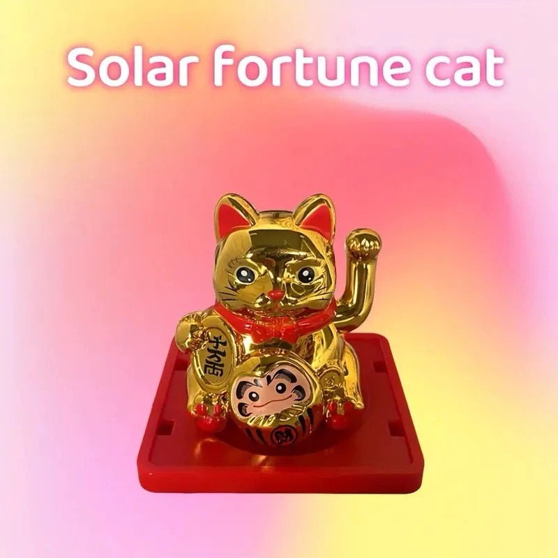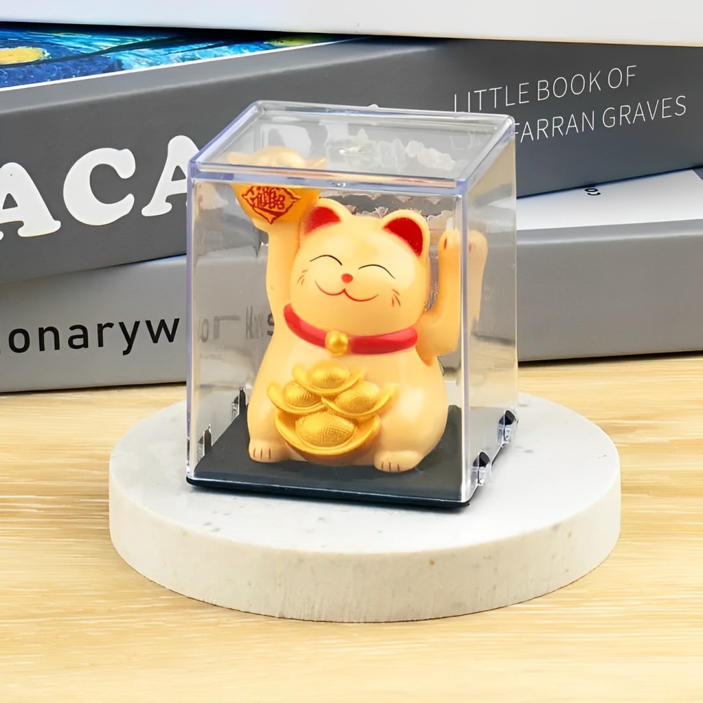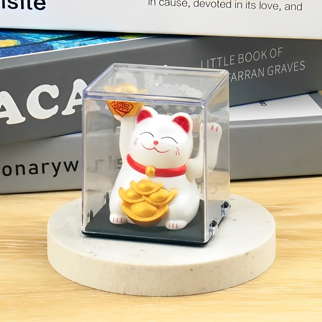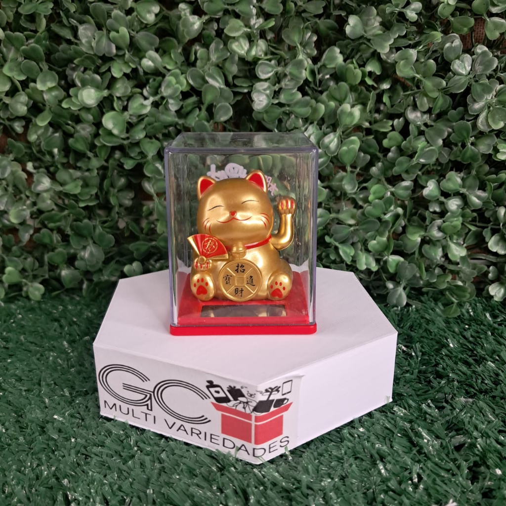 Gato da Sorte ManekiNeko Japonês Acenando Movido a Energia Solar Enfeite Decorativo