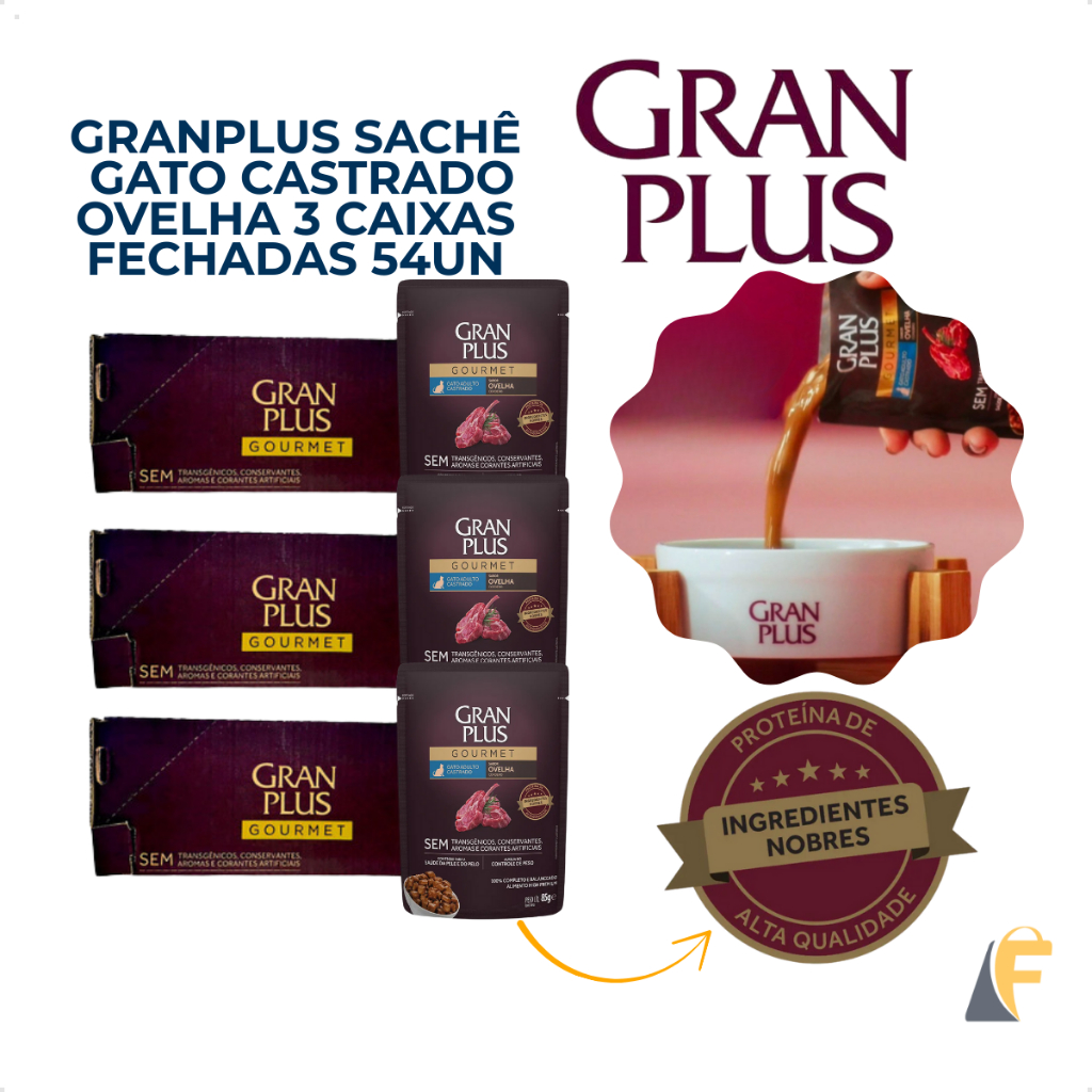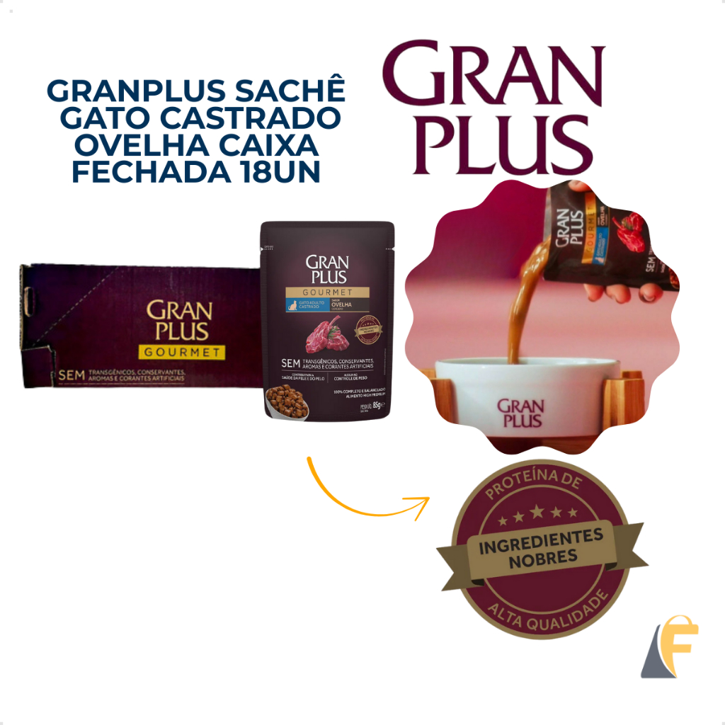 Gatos Gran Plus Ração Úmida Gourmet Castrado Sabor Cordeiro Ovelha 85g Sachê