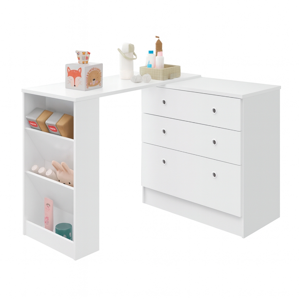 Gaveteiro Infantil 3 Gavetas Giratório Cômoda Branca Quarto Bebê Multiuso Organizadora com nichos