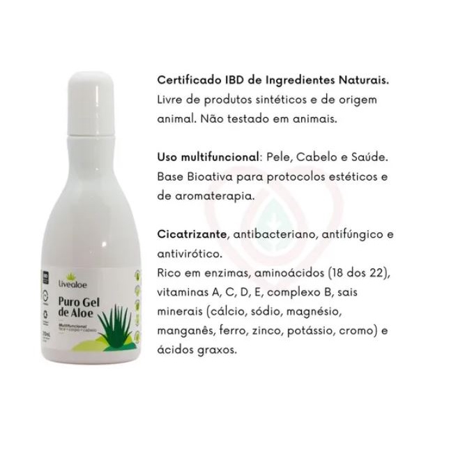 Gel Aloe Vera Organico Babosa Puro LIVEALOE 60ml/ 210ml/ 500ml/ 120ml - Testado Dermatologicamente