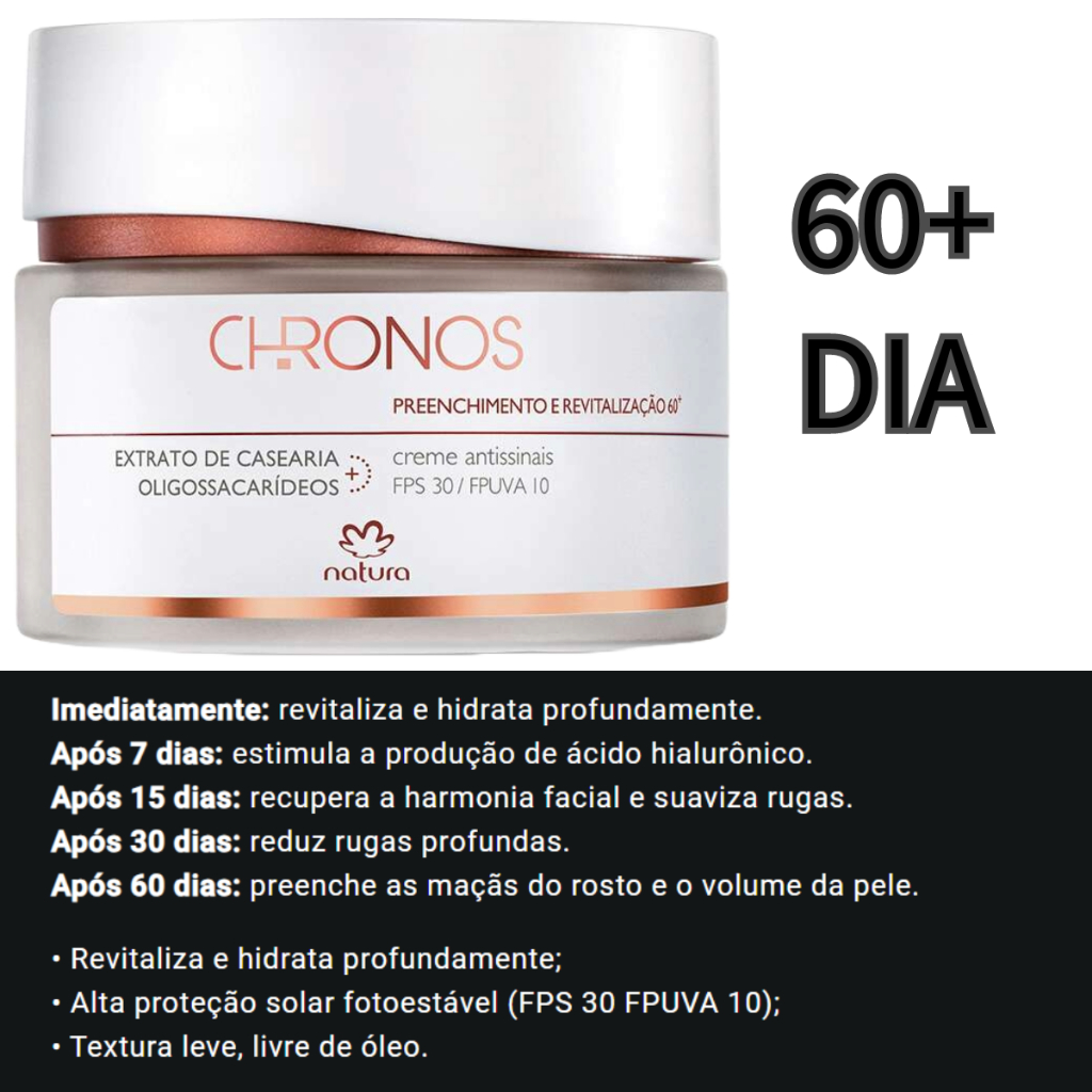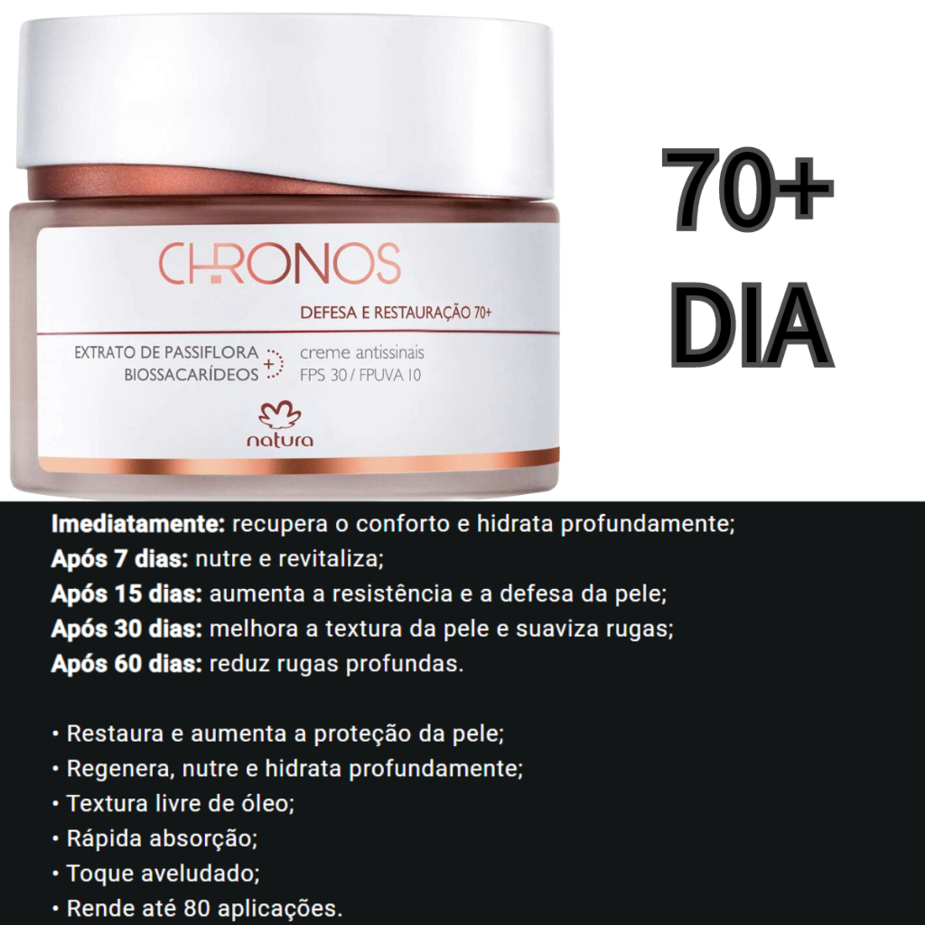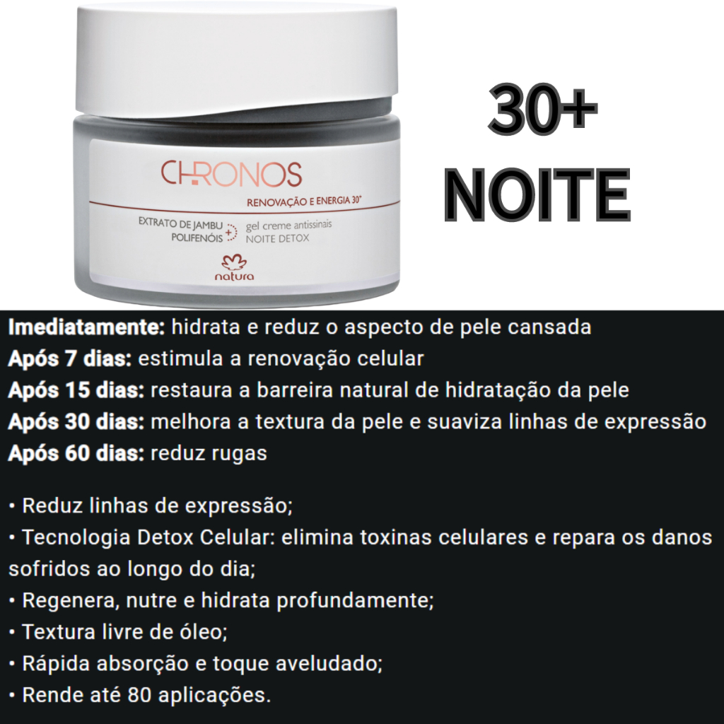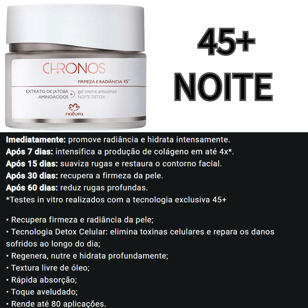 Gel creme antessintais renovação 30/45/60/70 natura chronos dia ou noite