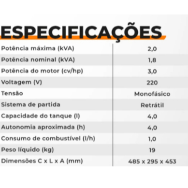 Gerador Inverter CSM 2000i-2 2000W Gasolina 220V 60Hz Portátil Silencioso