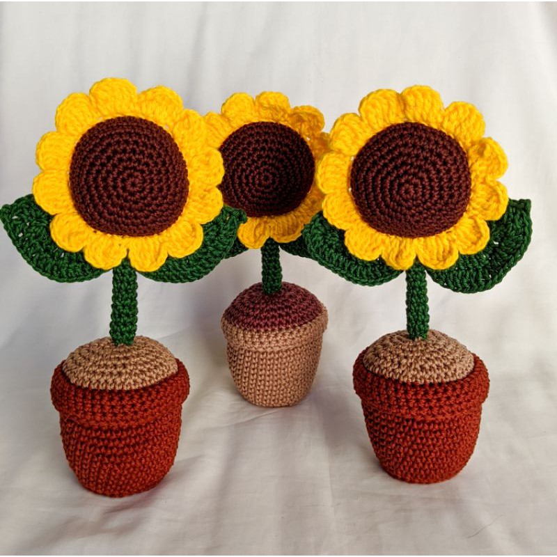 Girassol amigurumi - feito em crochê | Vaso de girassol decorativo | Flor de amigurumi - 22cm