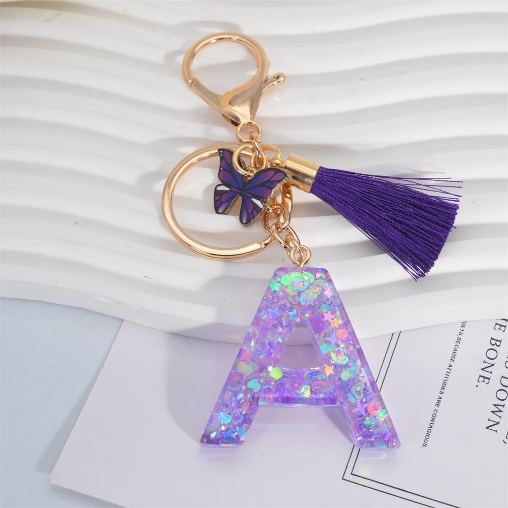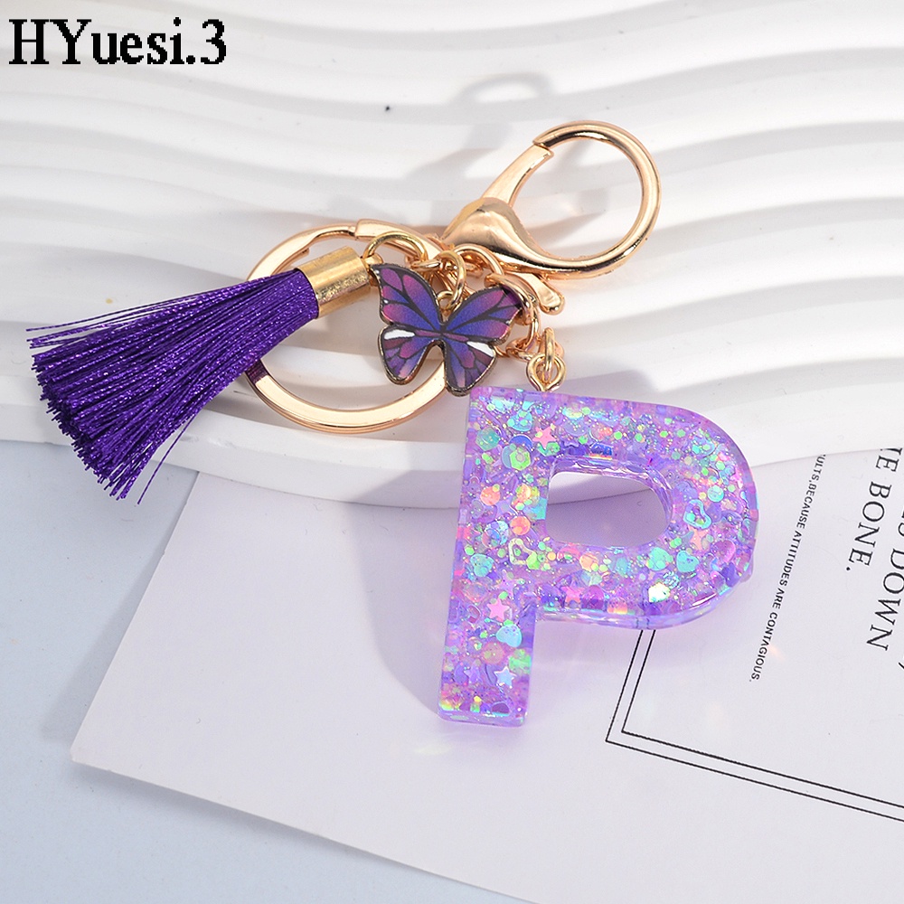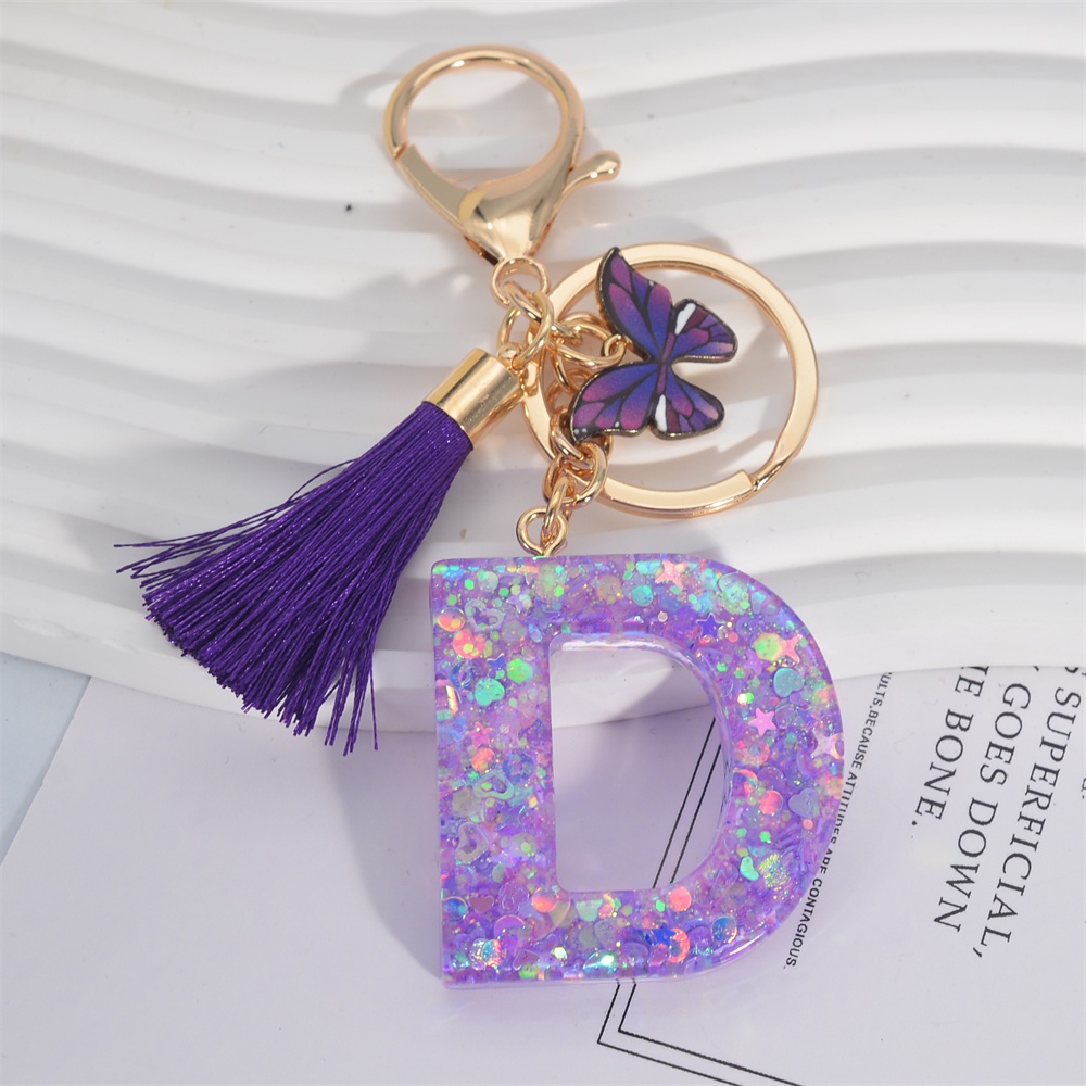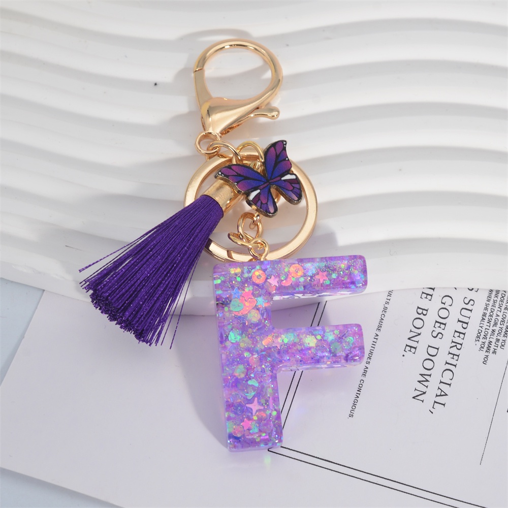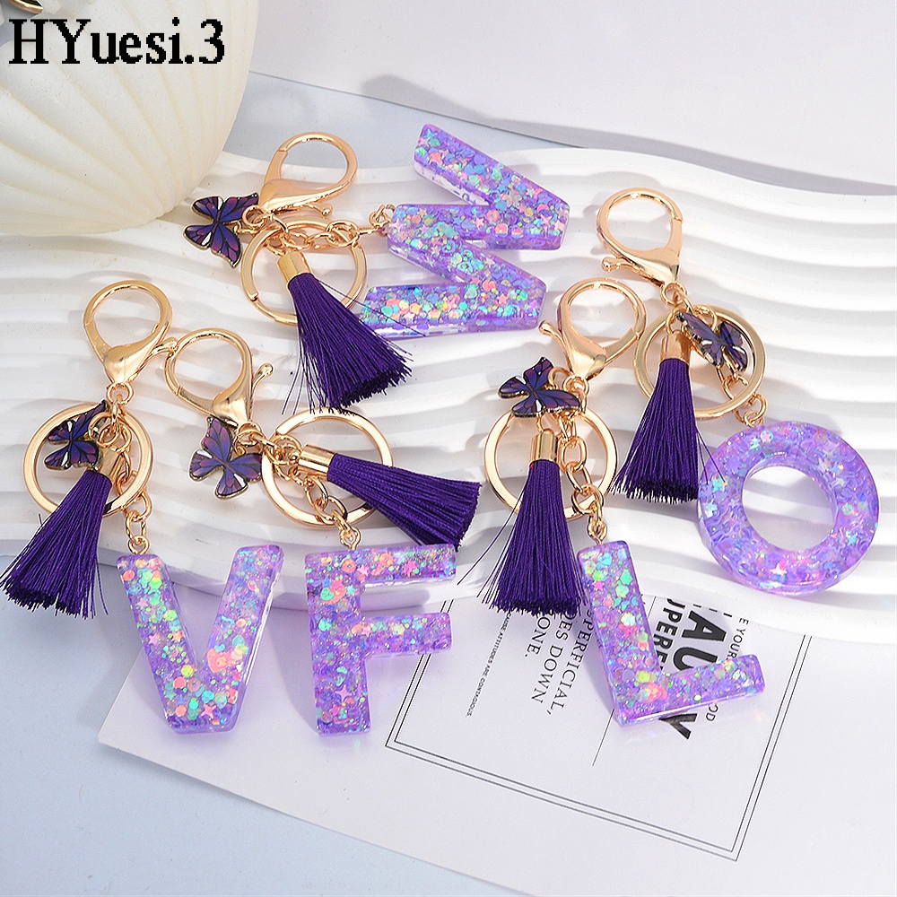 Glitter 26 Iniciais Nome Chaveiro Porta-Chaves Cor Púrpura Lantejoulas Recheado Com Letra Anel Chave Borboleta Tassel Para Mulher Mochila Decoração De