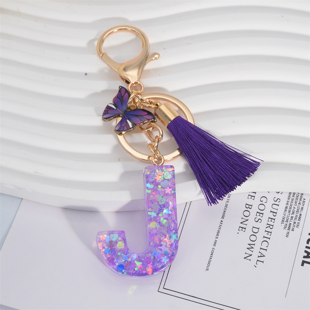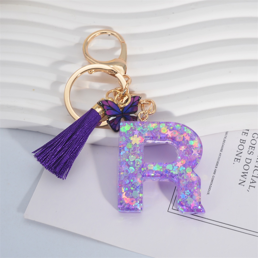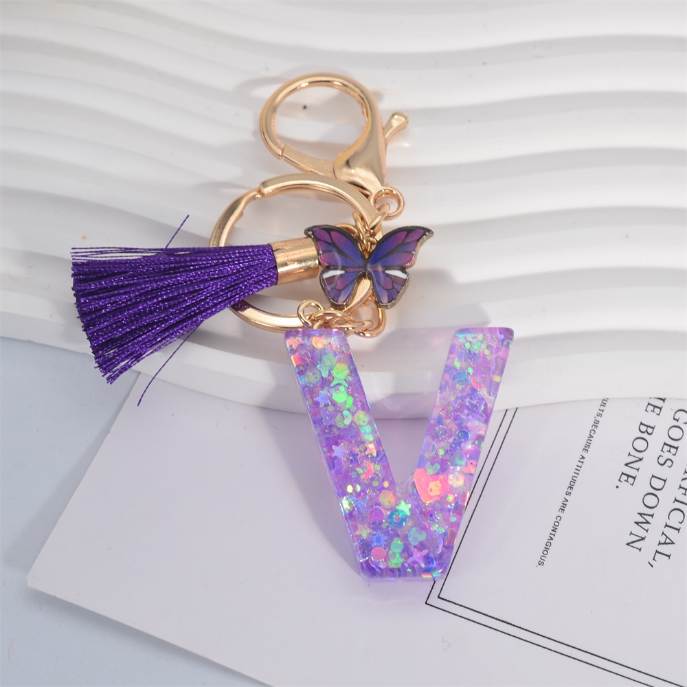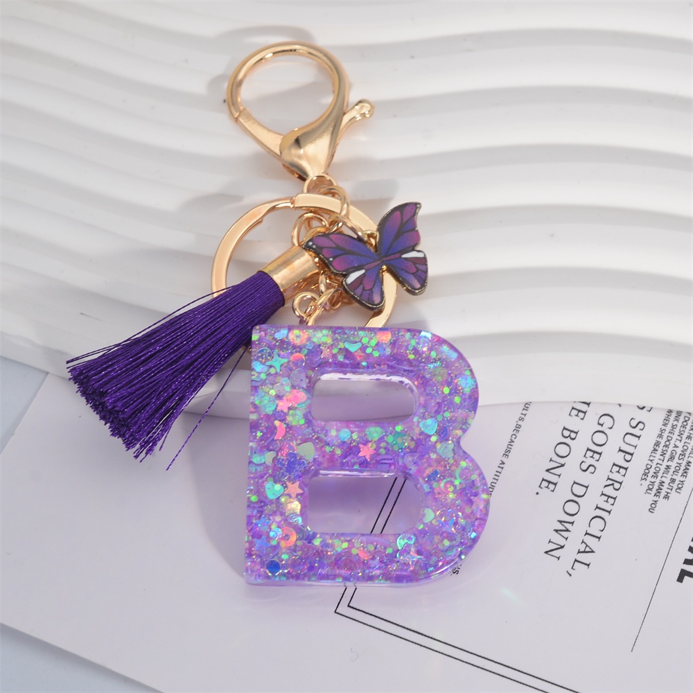 Glitter 26 Iniciais Nome Chaveiro Porta-Chaves Cor Púrpura Lantejoulas Recheado Com Letra Anel Chave Borboleta Tassel Para Mulher Mochila Decoração De