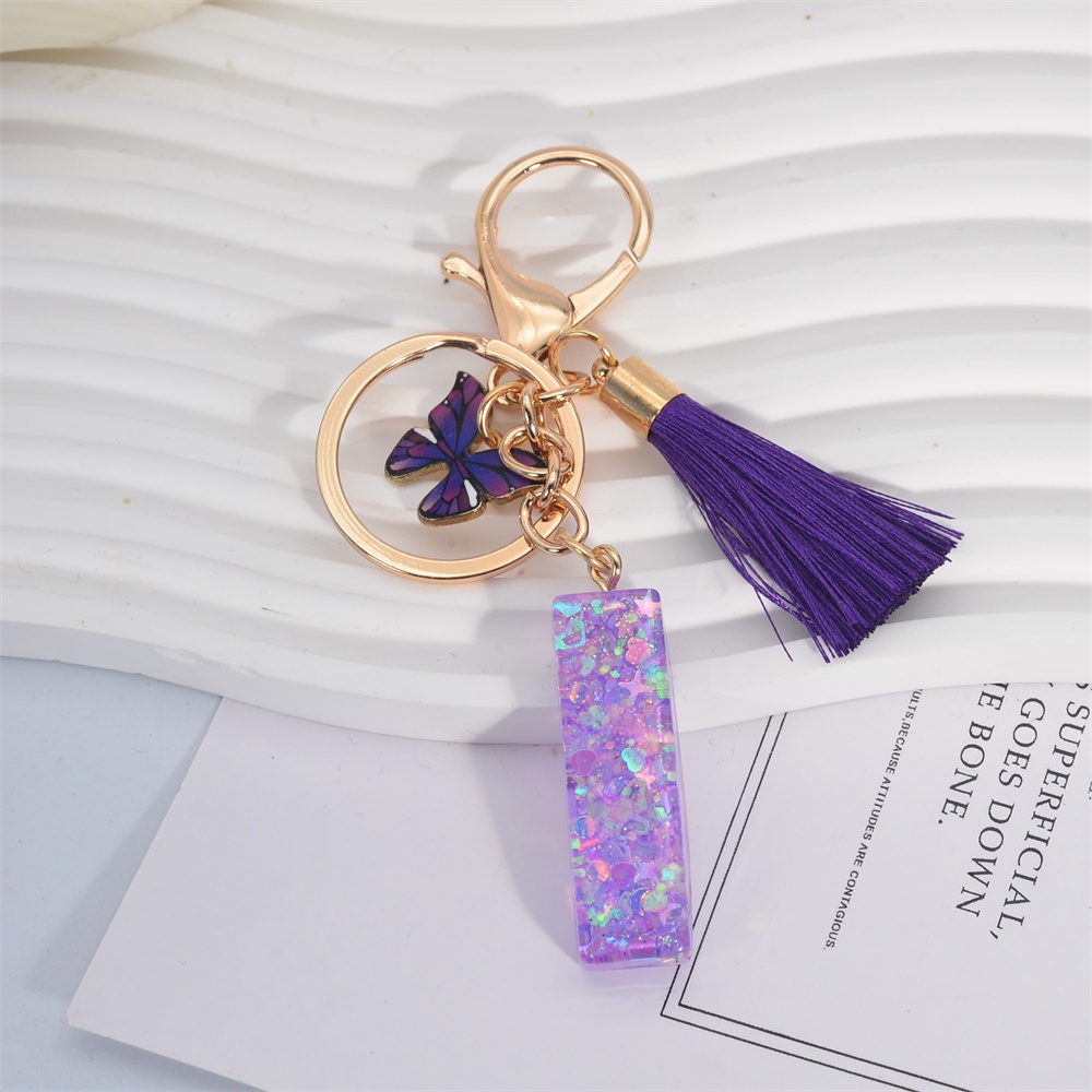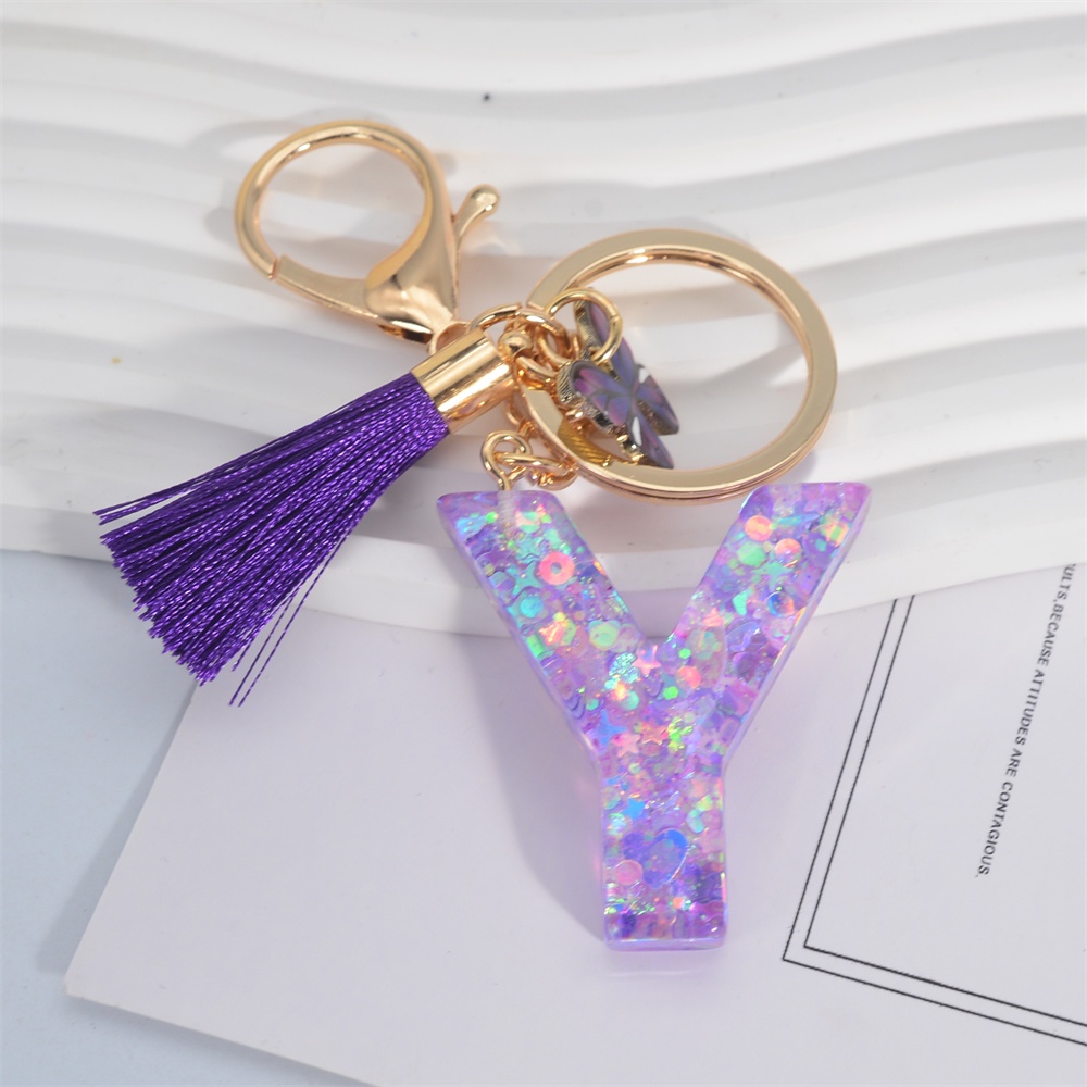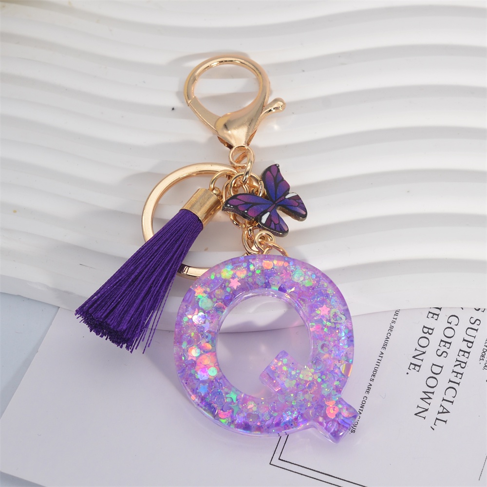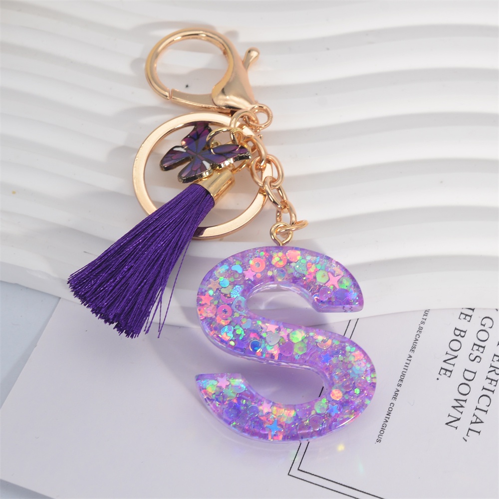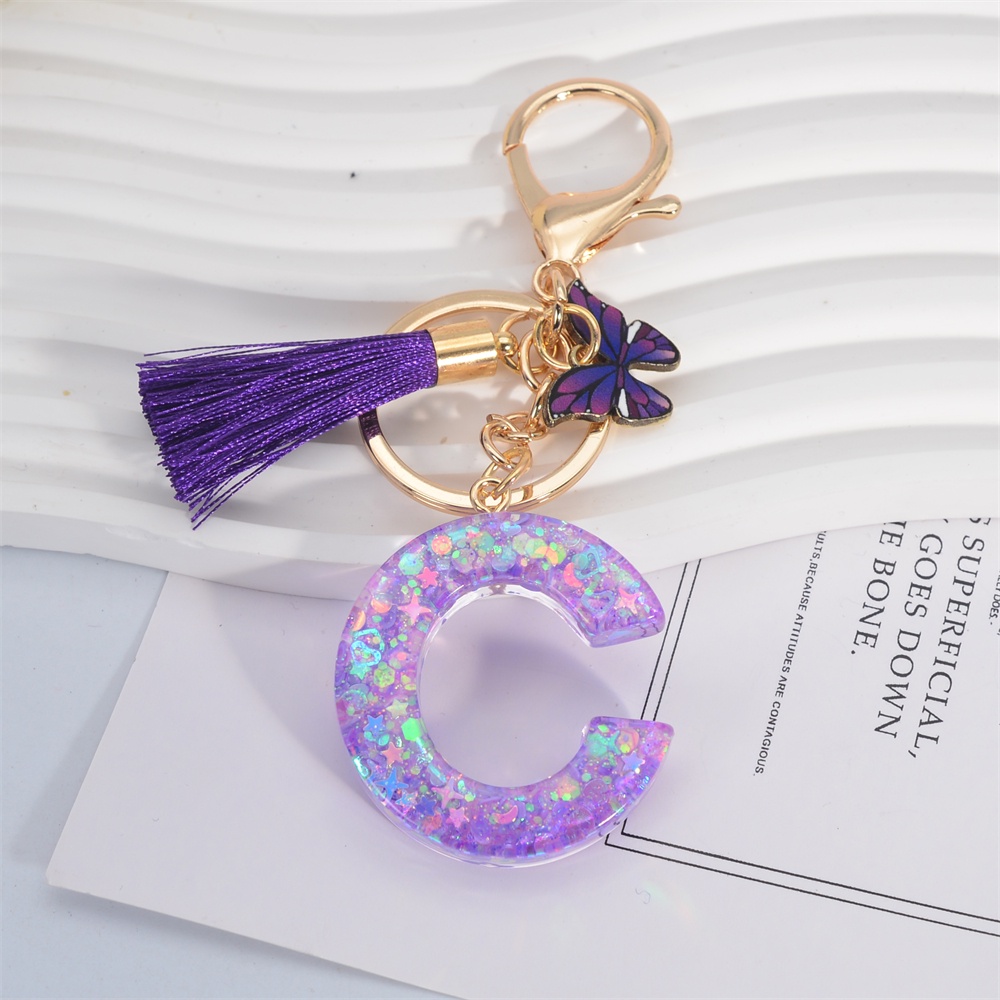 Glitter 26 Iniciais Nome Chaveiro Porta-Chaves Cor Púrpura Lantejoulas Recheado Com Letra Anel Chave Borboleta Tassel Para Mulher Mochila Decoração De