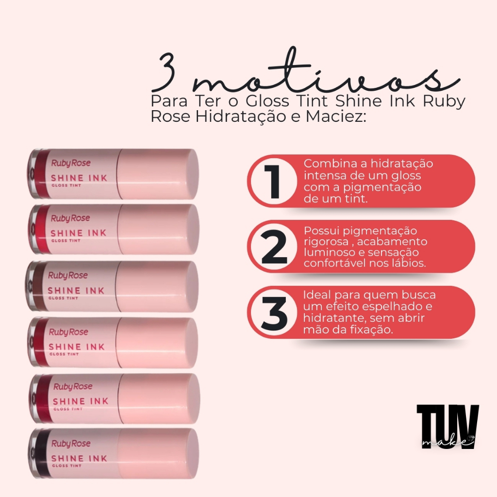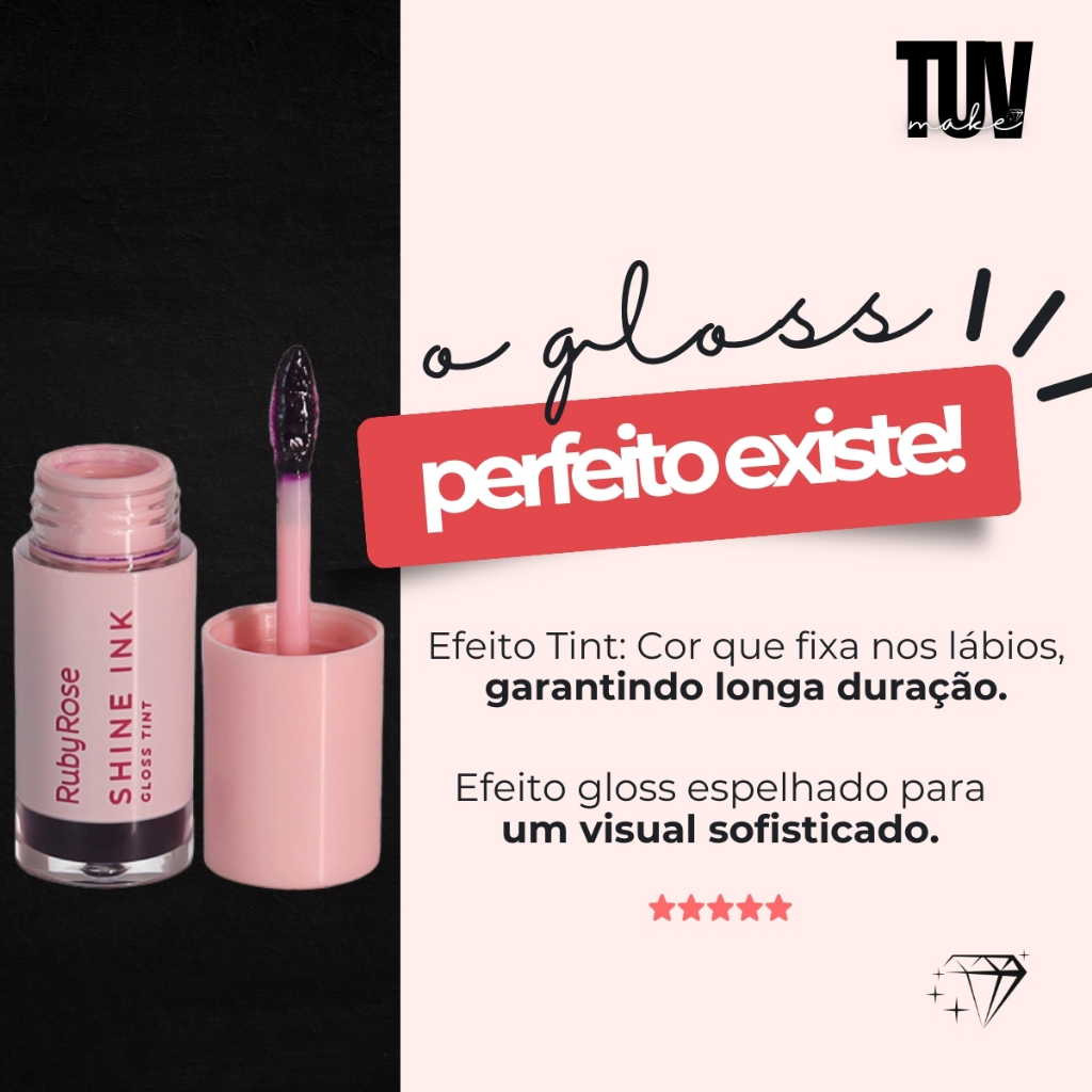 Gloss Tint Shine Ink Ruby Rose Cores Lindas Longa Duração
