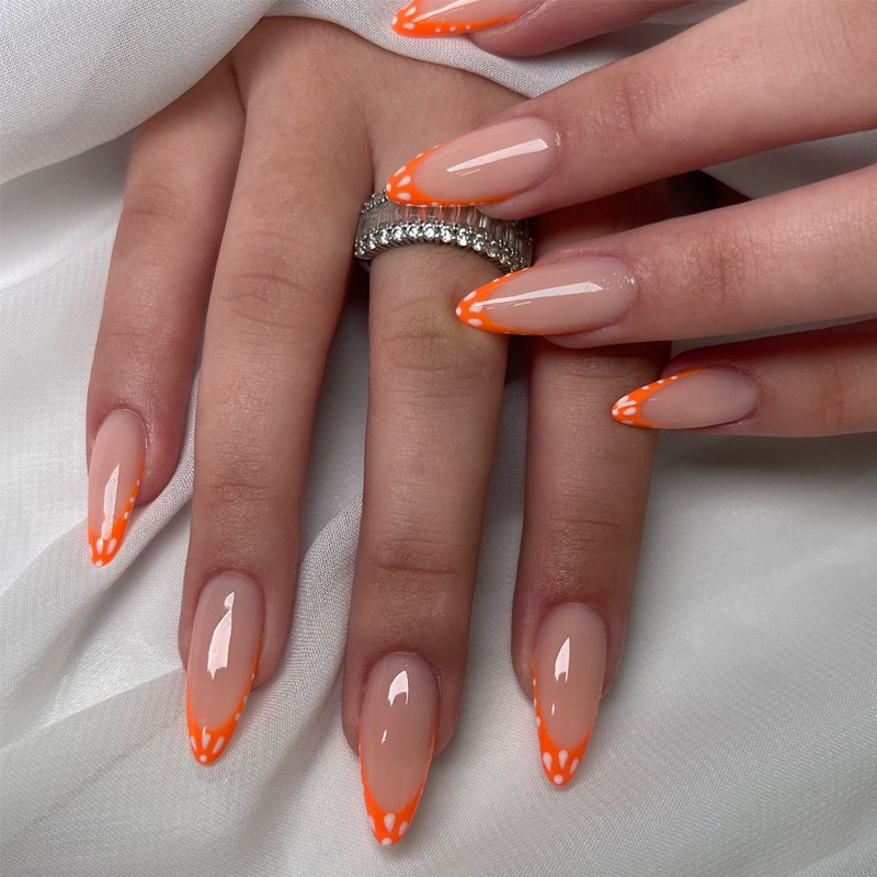 Gota De Água Branca Unha Francesa glitter Dourado Adesivo De Amêndoa Usando Arte Unhas Falsas
