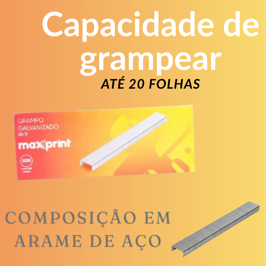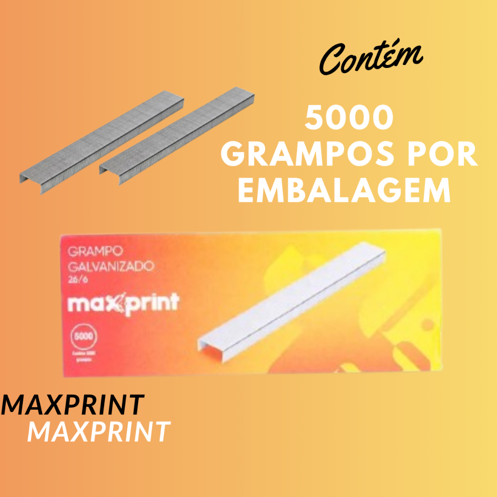 Grampo Papel Grampeador Folhas Escritório Galvanizado 26/6 Caixa com 5000 Unidades Maxprint