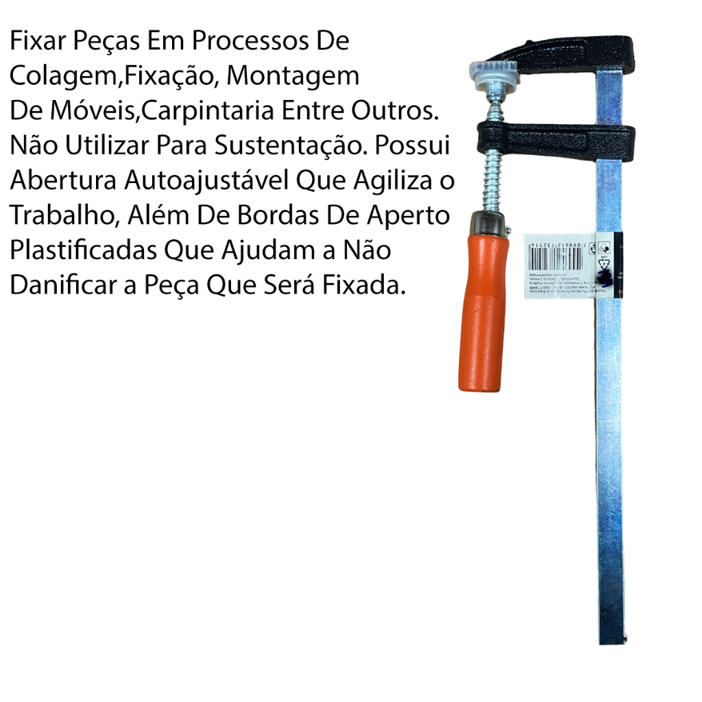 Grampo Sargento Marceneiro Tipo F 300 1000mm Aço Carbono Cabo Madeira Vários Tamanhos