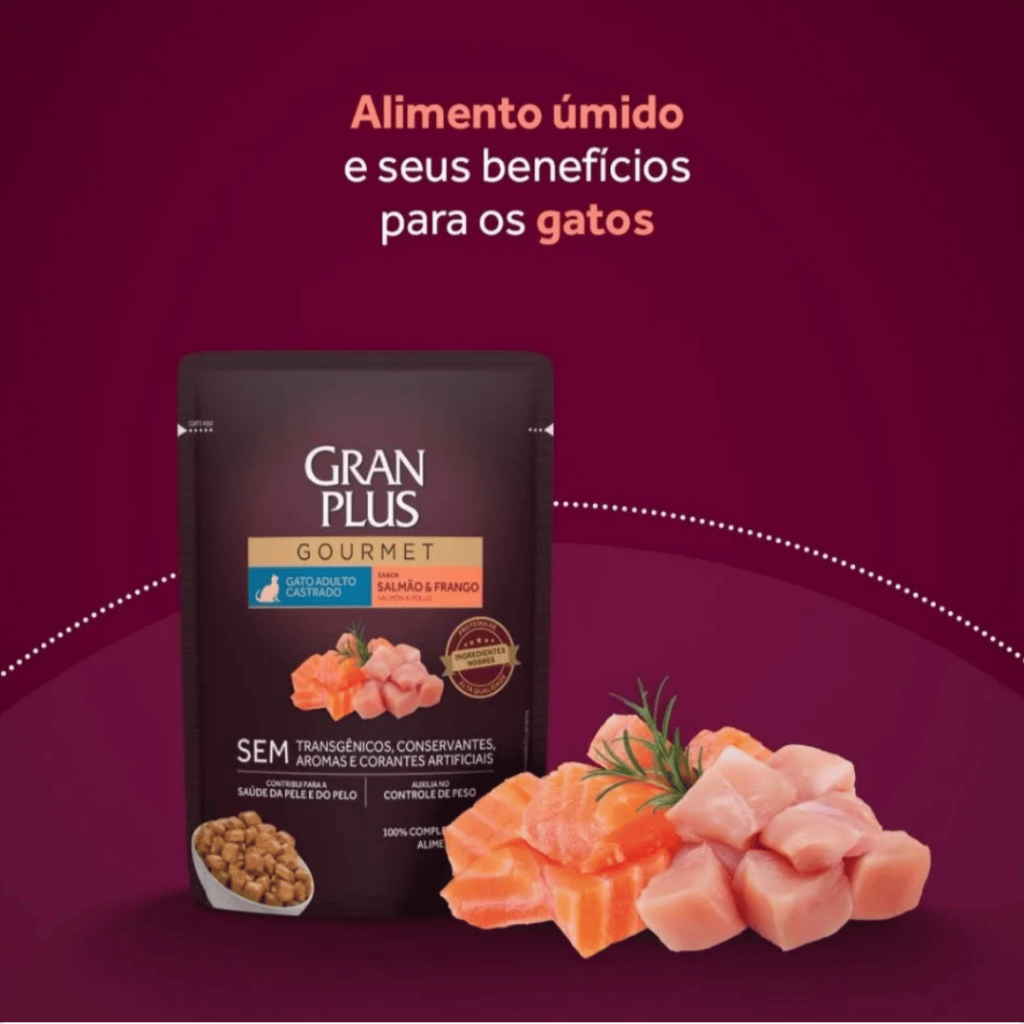 Gran Plus Ração Úmida Gourmet Gatos Castrado Frango 85g Sachê
