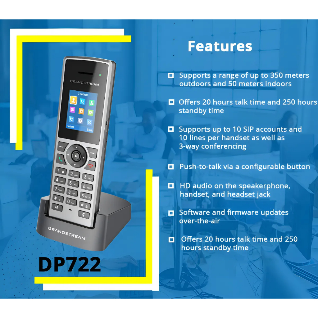 Grandstream Telefone Dp722 Voip Aparelho Sem Fio Dect Hd Ptt