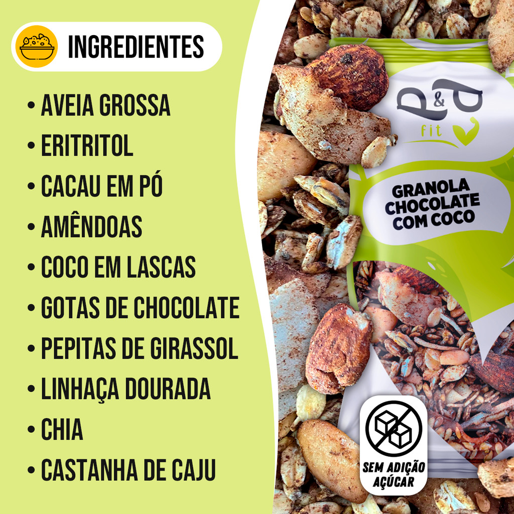 Granola Gourmet P&P Chocolate com Coco 250g Sem Açúcar - P&P