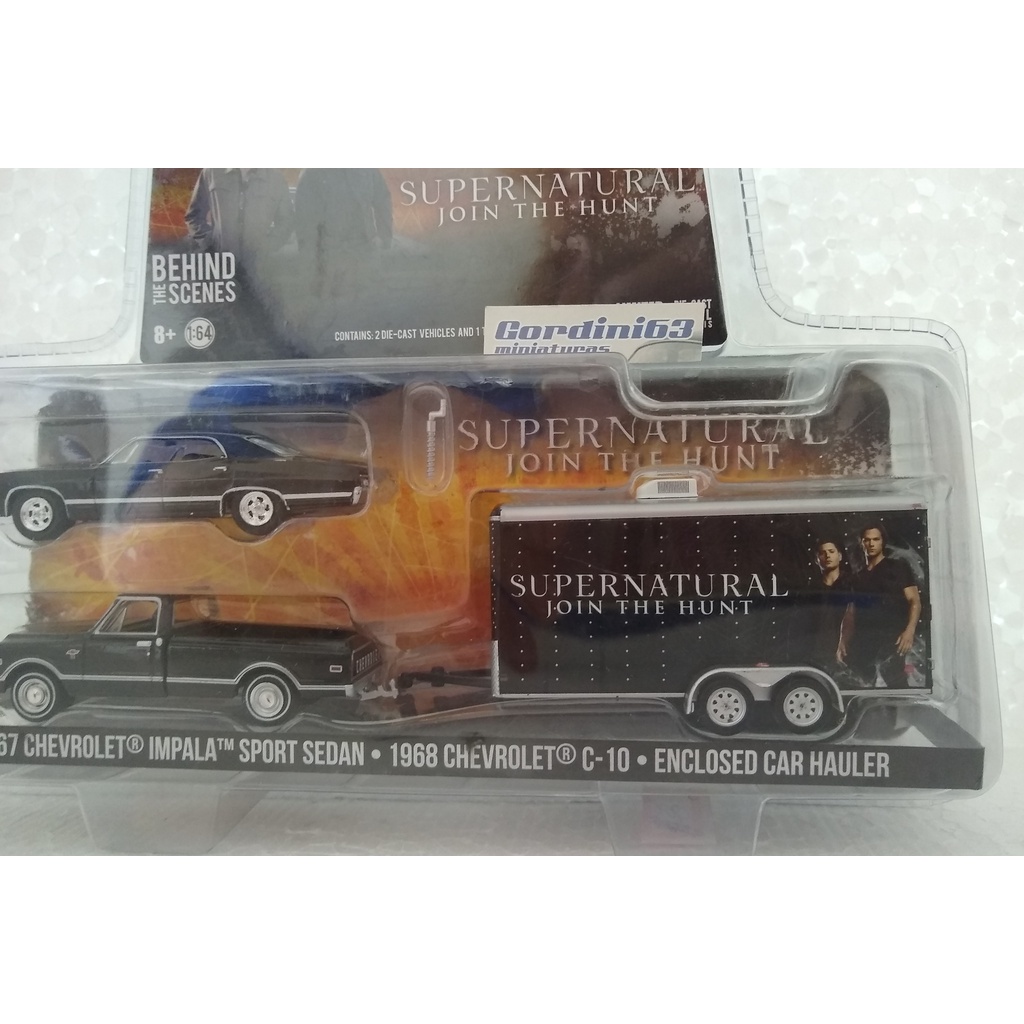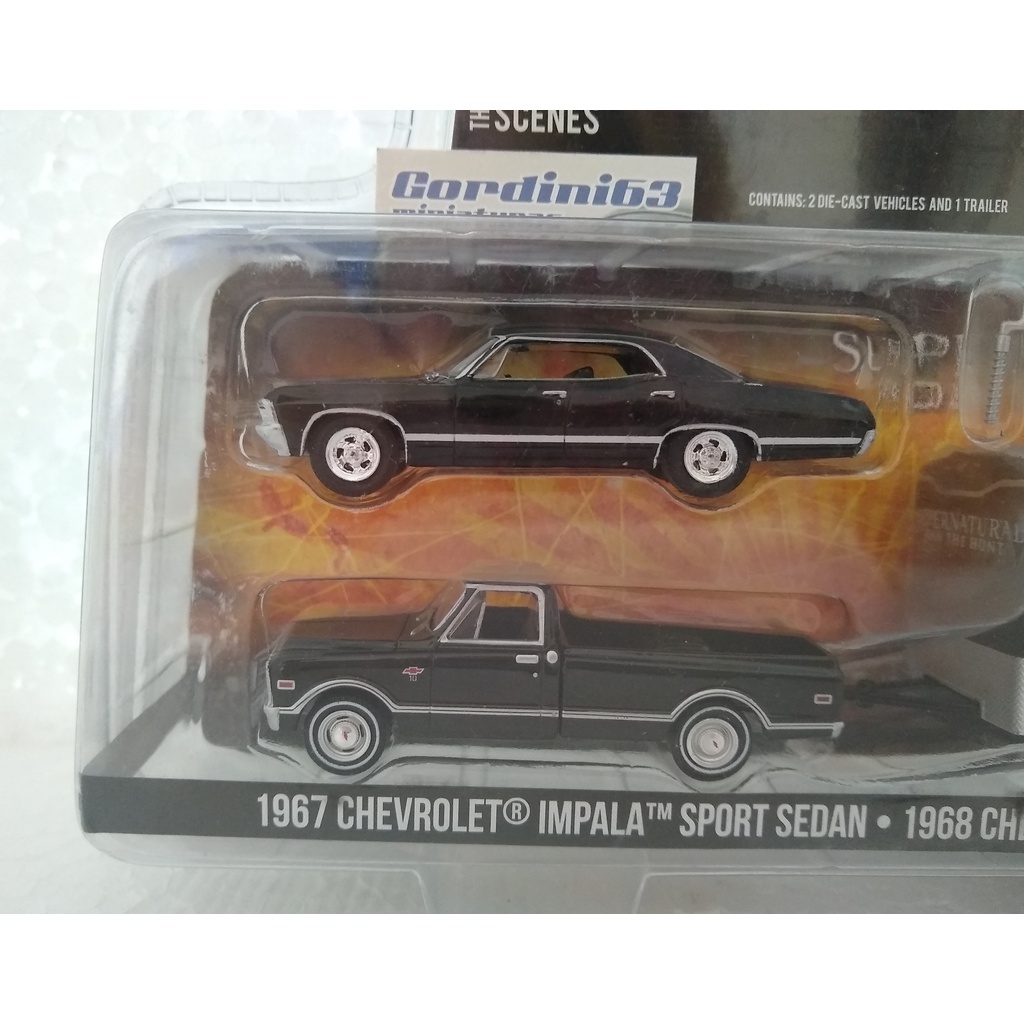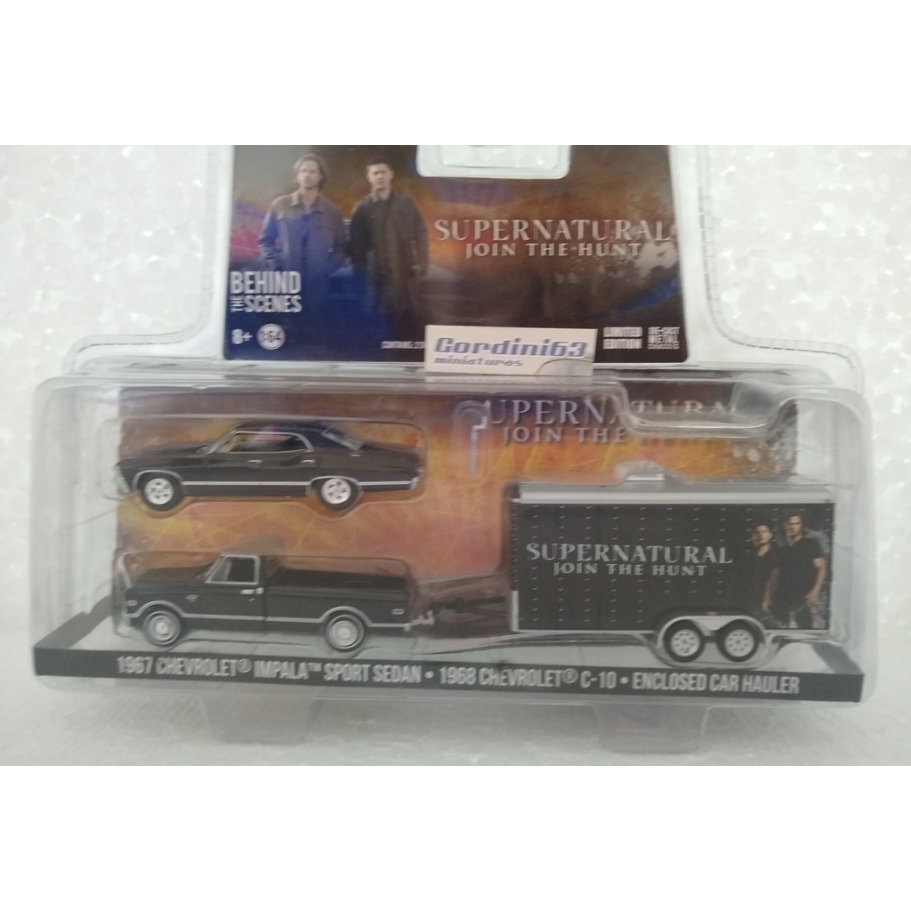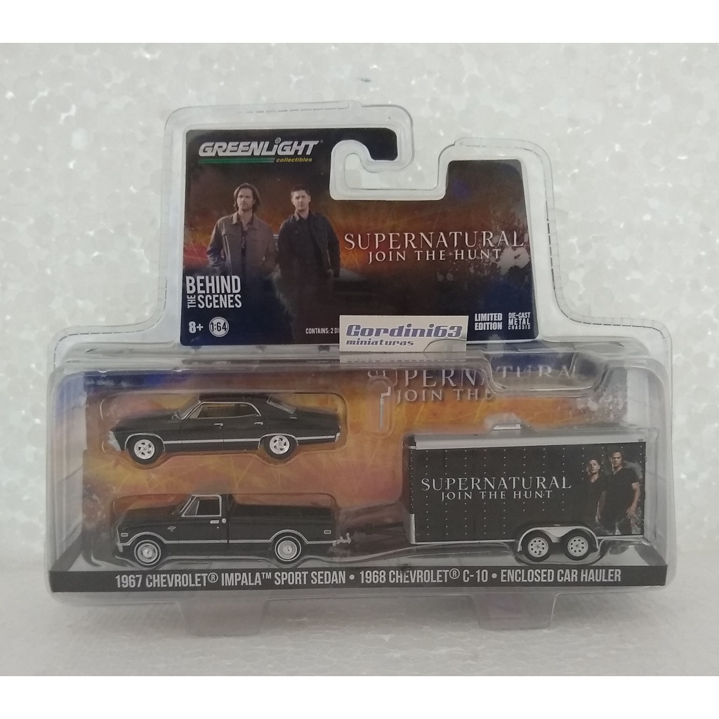 Greenlight 1967 Chevrolet Impala Sport Sedan + 1968 Chevrolet C-10 Enclosed Car Hauler - Supernatural Join the Hunt