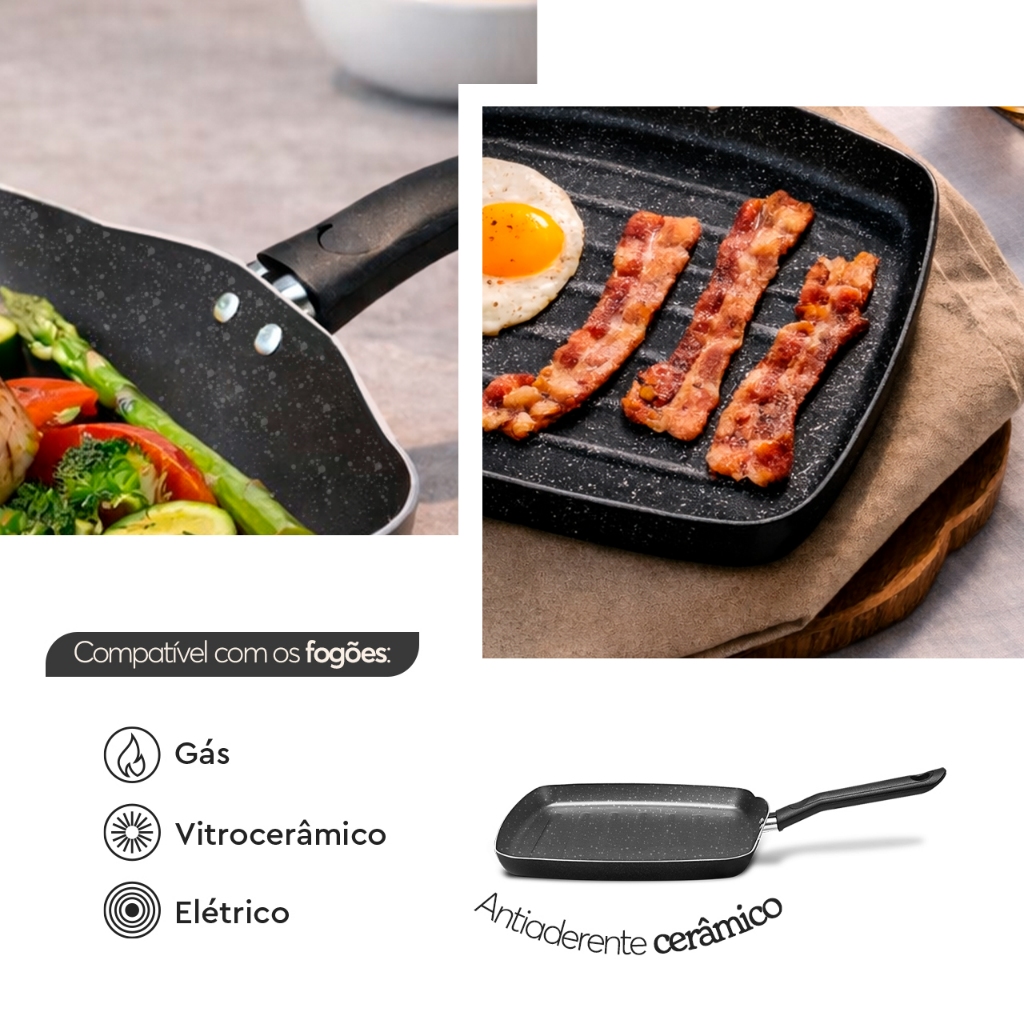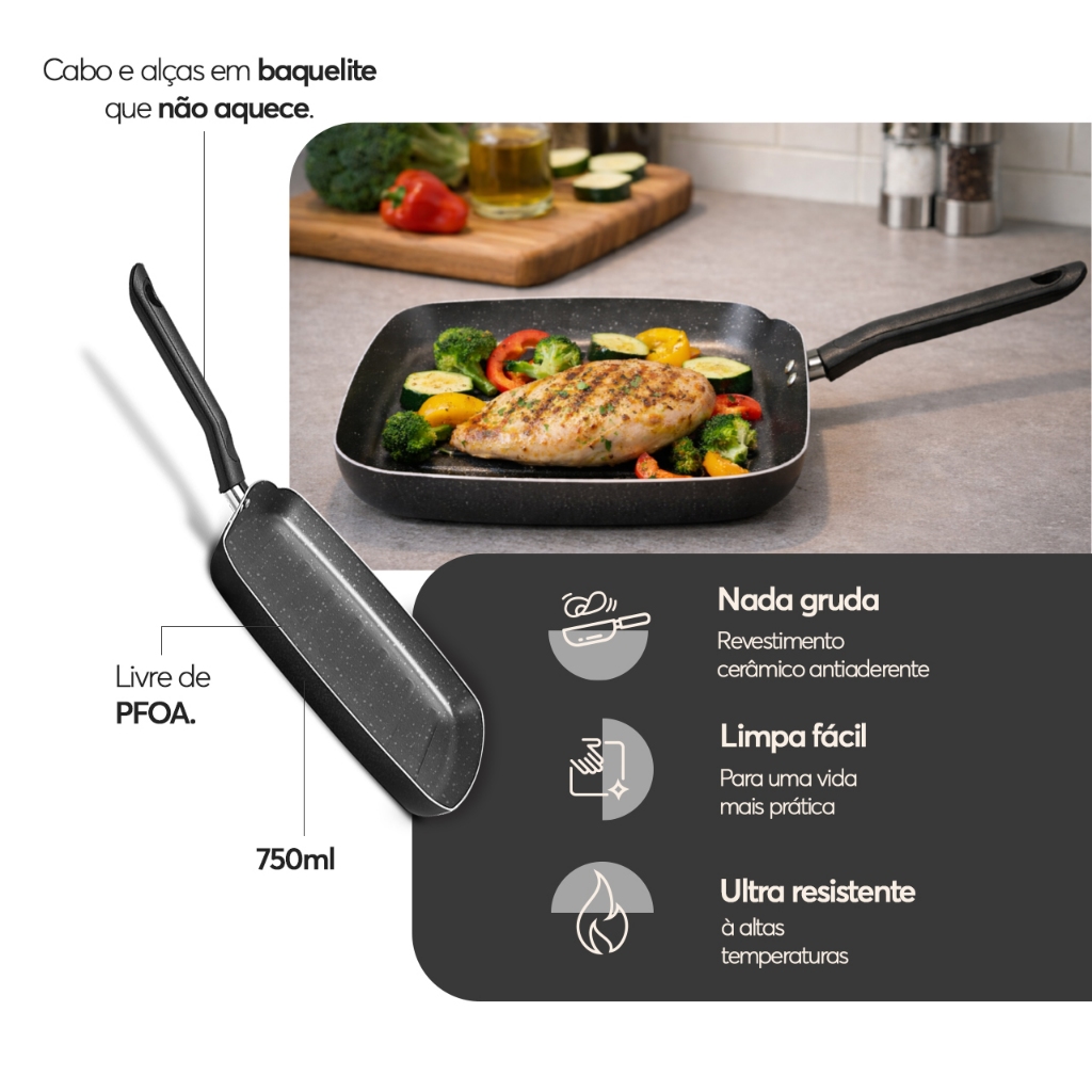 Grill Brinox Ceramic Life Naturalle 24x24cm 750ml Preto Ebony